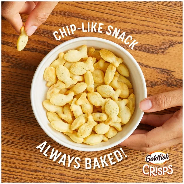 ¡Experimente las nuevas patatas fritas de pez dorado con crema agria y cebolla! Estos irresistibles Goldfish son ligeros y aireados, siempre horneados y sazonados a la perfección. ¡Las nuevas Goldfish Crisps, del tamaño de un bocado, son el refrigerio perfecto con forma de chip, horneados con papa y trigo! Con la satisfactoria mezcla de rica crema agria y sabrosa cebolla, estas patatas fritas están sazonadas a la perfección y listas para disfrutar. La bolsa de 6.25 onzas es perfecta para compartir, tomar un refrigerio solo o llevarla mientras viaja. Pruebe estas deliciosas patatas fritas con forma de pescado, disponibles con sabor a queso cheddar, crema agria y cebolla, y sal y vinagre. ¡Pruebe cómo hace Goldfish las patatas fritas!