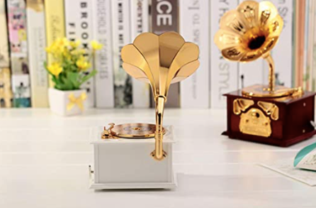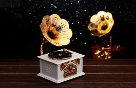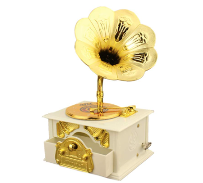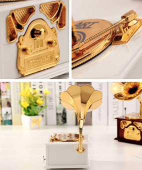 - Forma de las cajas de música: gramófono, estilo clásico y nostálgico.