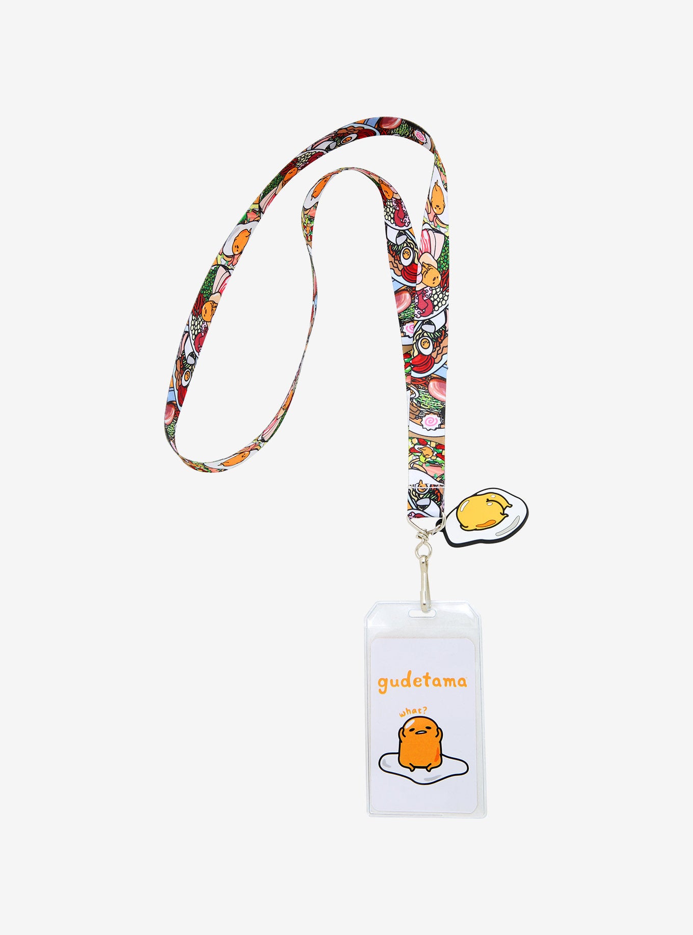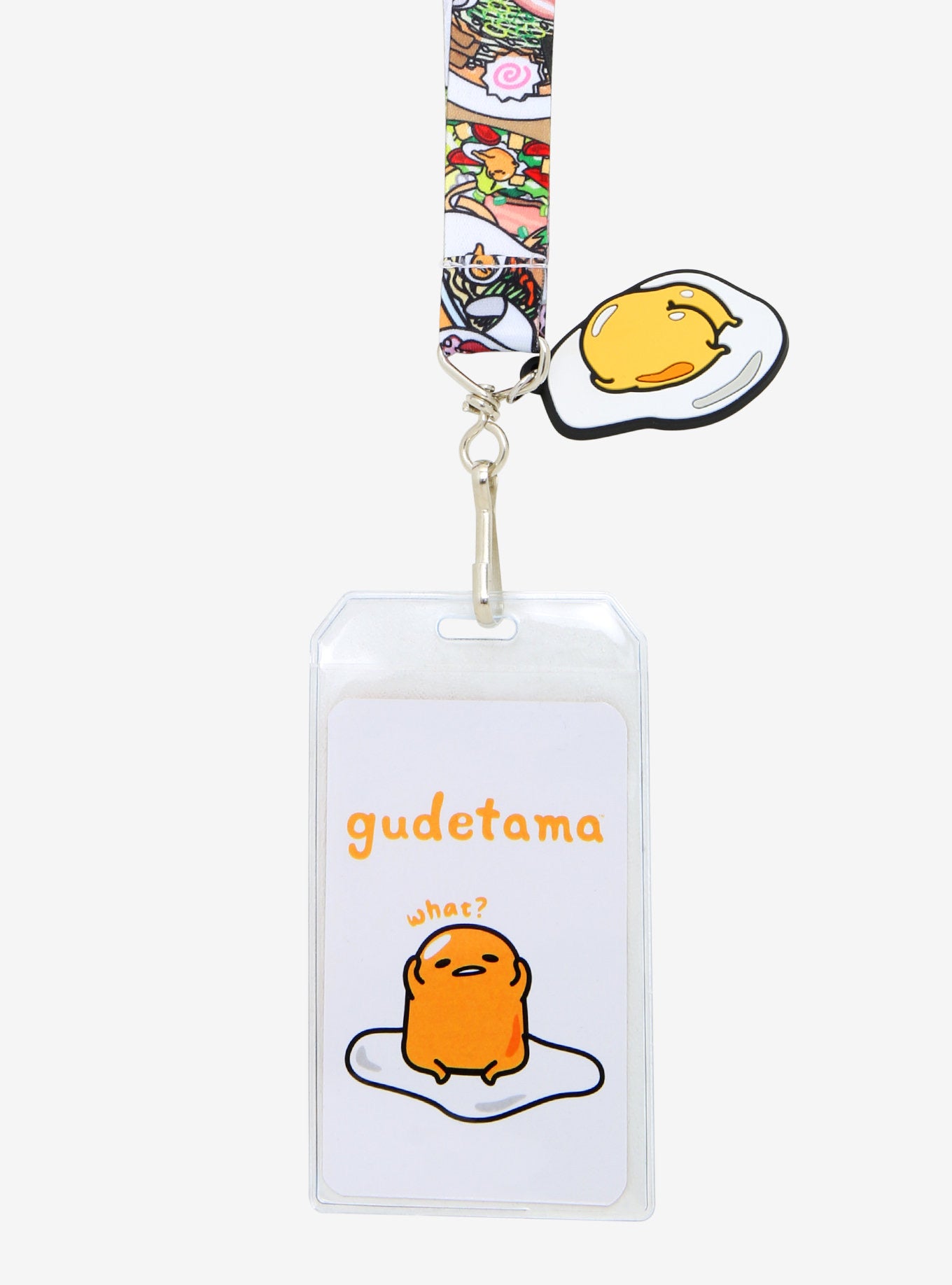 ¡NOM Nom Nom! ¿Vas a comer ramen? Manten tus llaves cerca con este cordón de Gudetama. Presenta una impresión completa de los ingredientes del ramen y nuestro huevo perezoso favorito. Pantalla de identificación clara y dije de Gudetama.