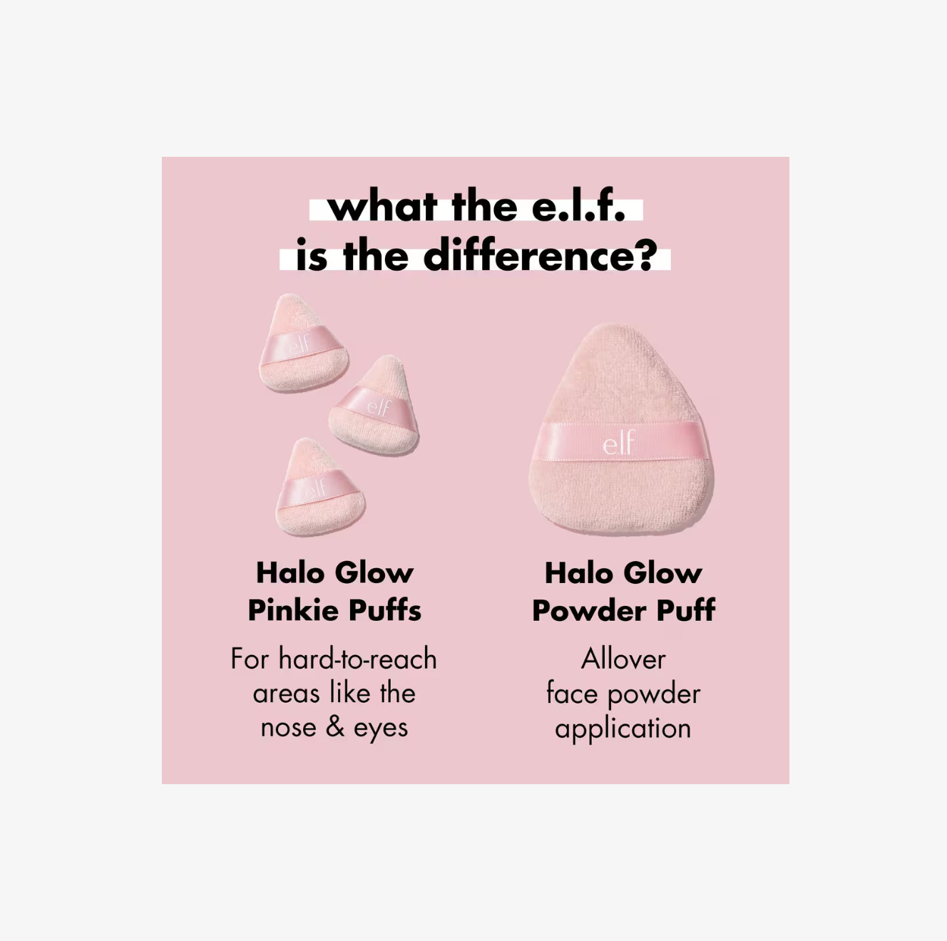 Logra una aplicación de maquillaje impecable con los Halo Glow Pinkie Puffs de e.l.f. Estas mini borlas del tamaño de un dedo son ideales para aplicar polvos sueltos o compactos en áreas difíciles de alcanzar del rostro. Ofrecen una aplicación precisa alrededor de los ojos y la nariz, además de cobertura puntual sin dejar una apariencia cargada.