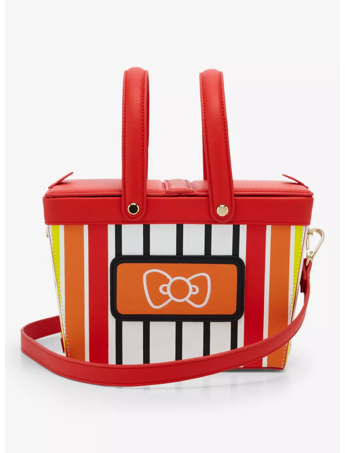 ¡Compra con estilo con este adorable bolso Sanrio! Con forma de cesta de la compra, este bolso incluye diseños de lazos bordados en la parte delantera y trasera junto con detalles impresos de Hello Kitty y sus amigos. Con asas superiores móviles, dos aberturas magnéticas y una correa cruzada extraíble, este bolso es perfecto para tu próximo viaje a Kawaii Mart.