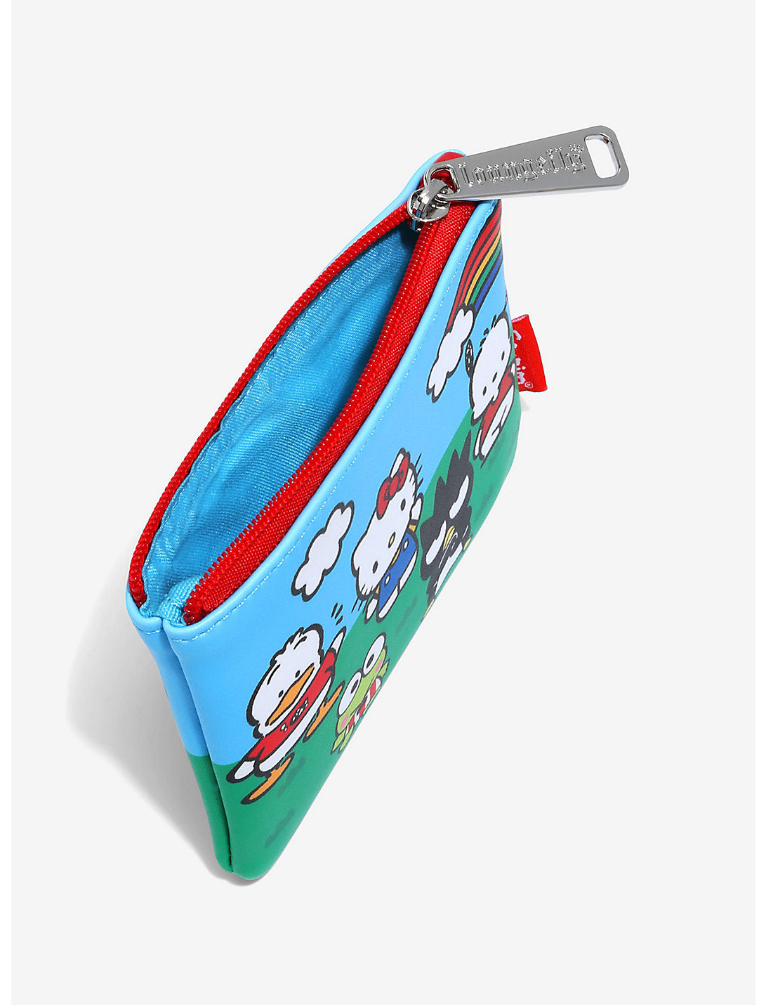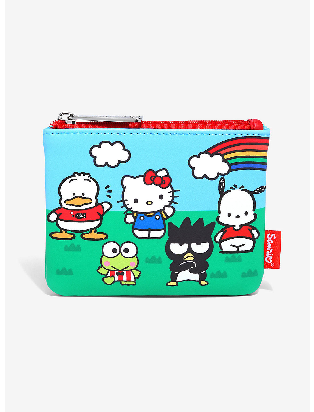 ¡Lleva todo tu cambio de repuesto con la ayuda de Hello Kitty y otros amigos de Sanrio en este monedero de Loungefly! Presentados en un colorido gráfico escénico, Pekkle, Hello Kitty, Pochacco, Keroppi y Badtz-Maru aparecen con un arcoíris en el fondo, listos para acompañarte en un día lleno de aventuras. También cuenta con un cierre de bolsillo con cremallera en tono plateado.