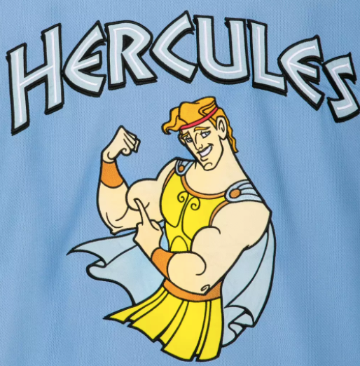 Las aplicaciones bordadas incluyen el personaje de Hércules y el logotipo de la película en la parte posterior
