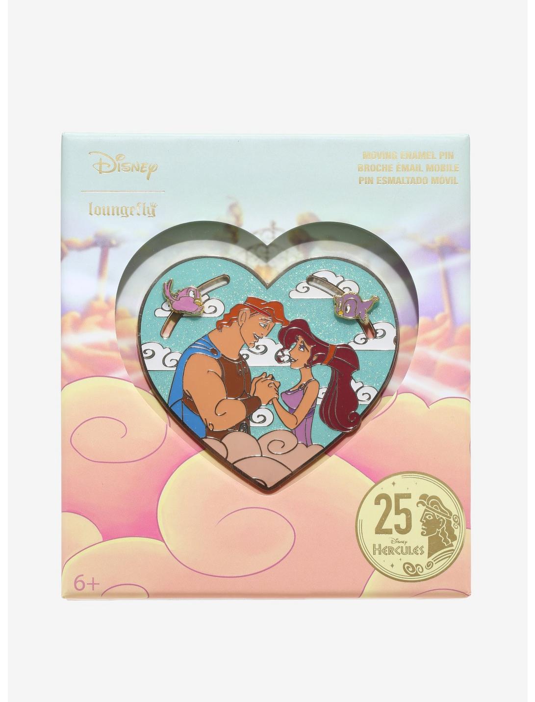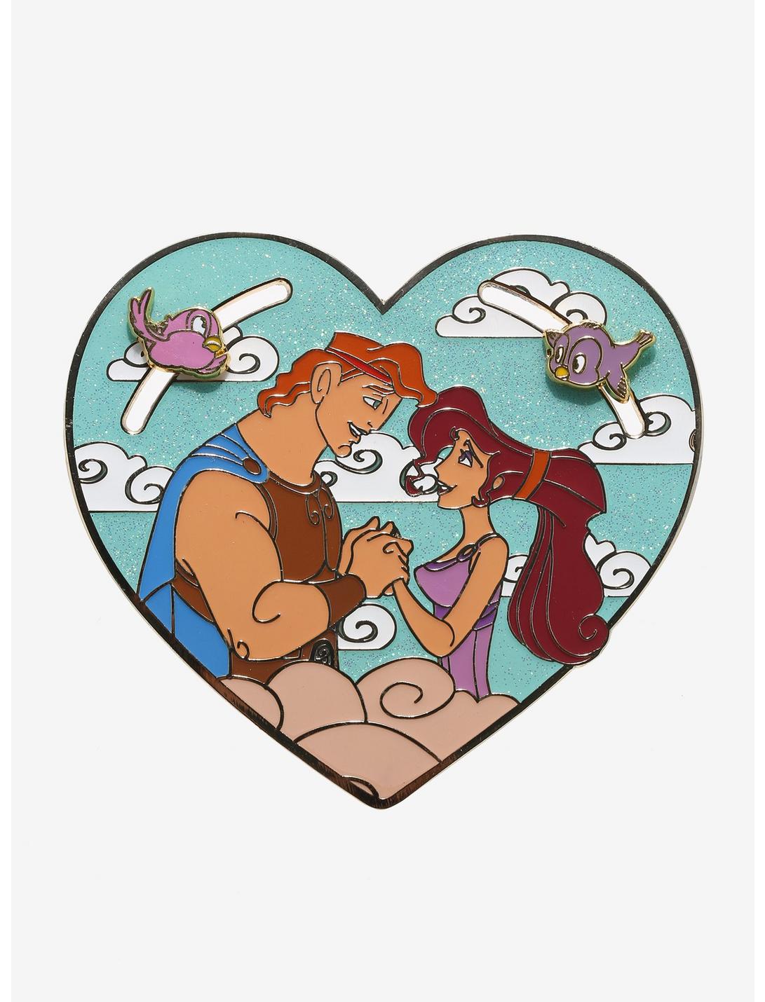 ¡No diremos que estamos enamorados de este pin! (Lo somos totalmente). ¡Agregue algo heroico a su colección de pines esmaltados de Disney con este pin grande y brillante en forma de corazón de Hércules! Con Hércules y Meg mirándose amorosamente, con pájaros deslizándose en la parte superior.