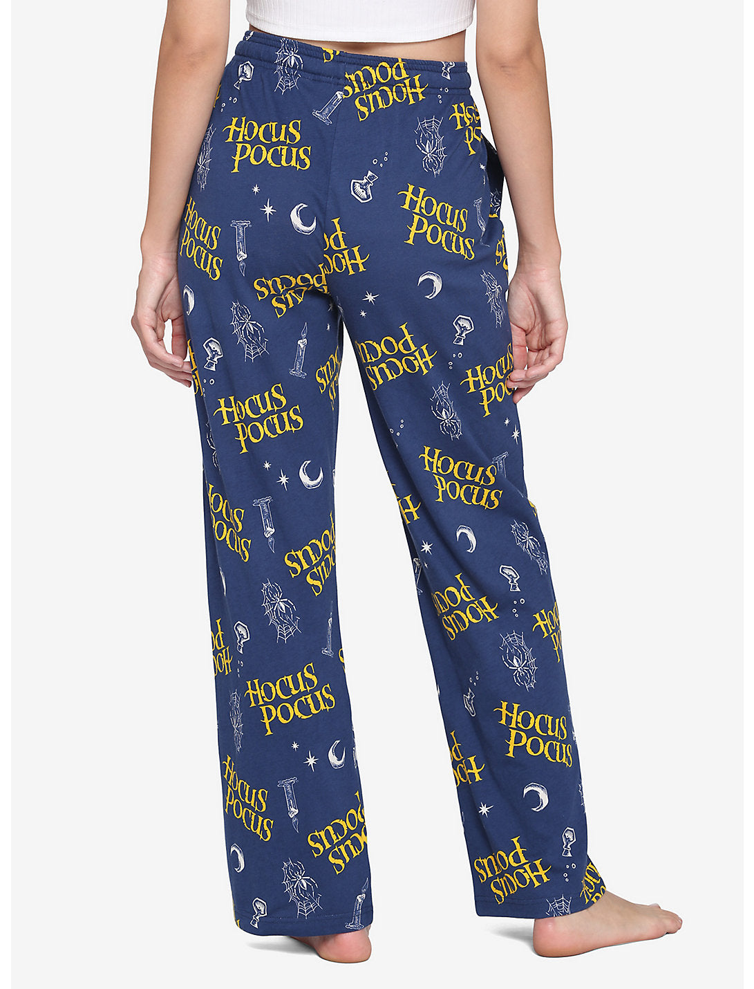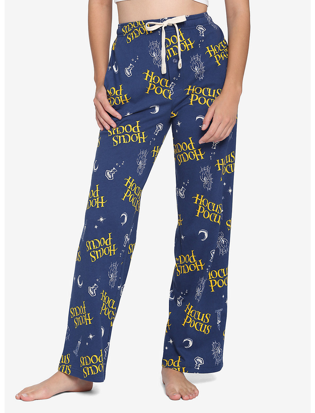 Prepárate para pasar la noche con tu película de Halloween favorita con estos pantalones de pijama con el logotipo de Hocus Pocus, una botella de poción, una telaraña, una araña, una estrella y un estampado de luna. Con bolsillos a la cadera, cintura elástica con cordón y bragueta de un solo botón.