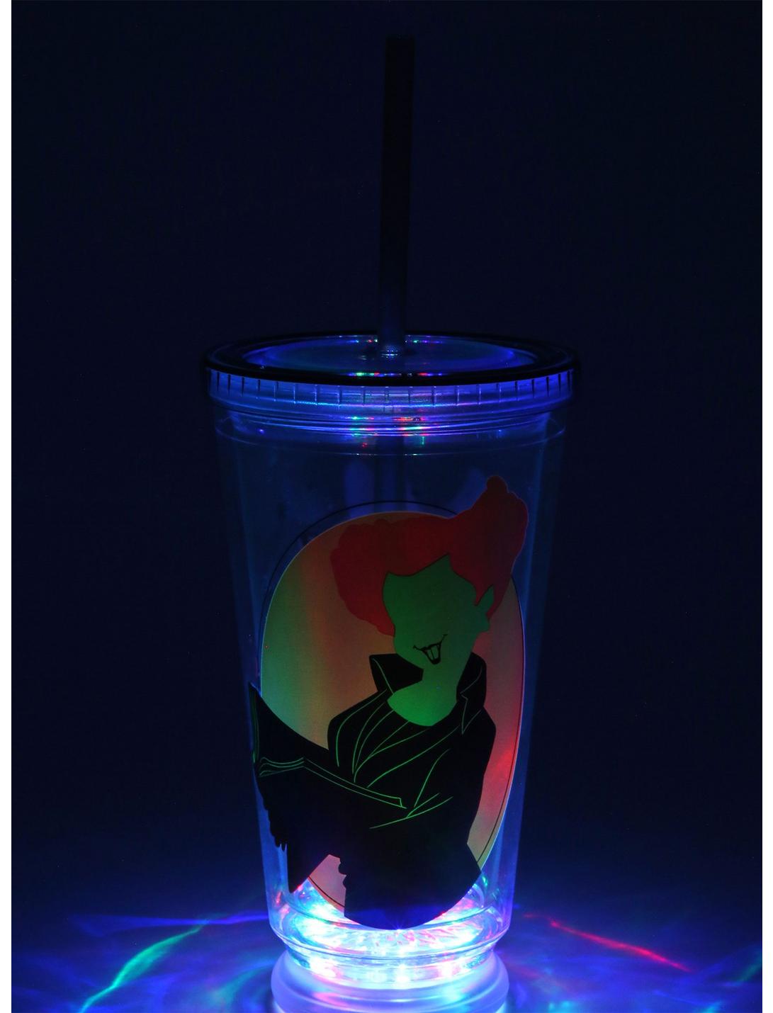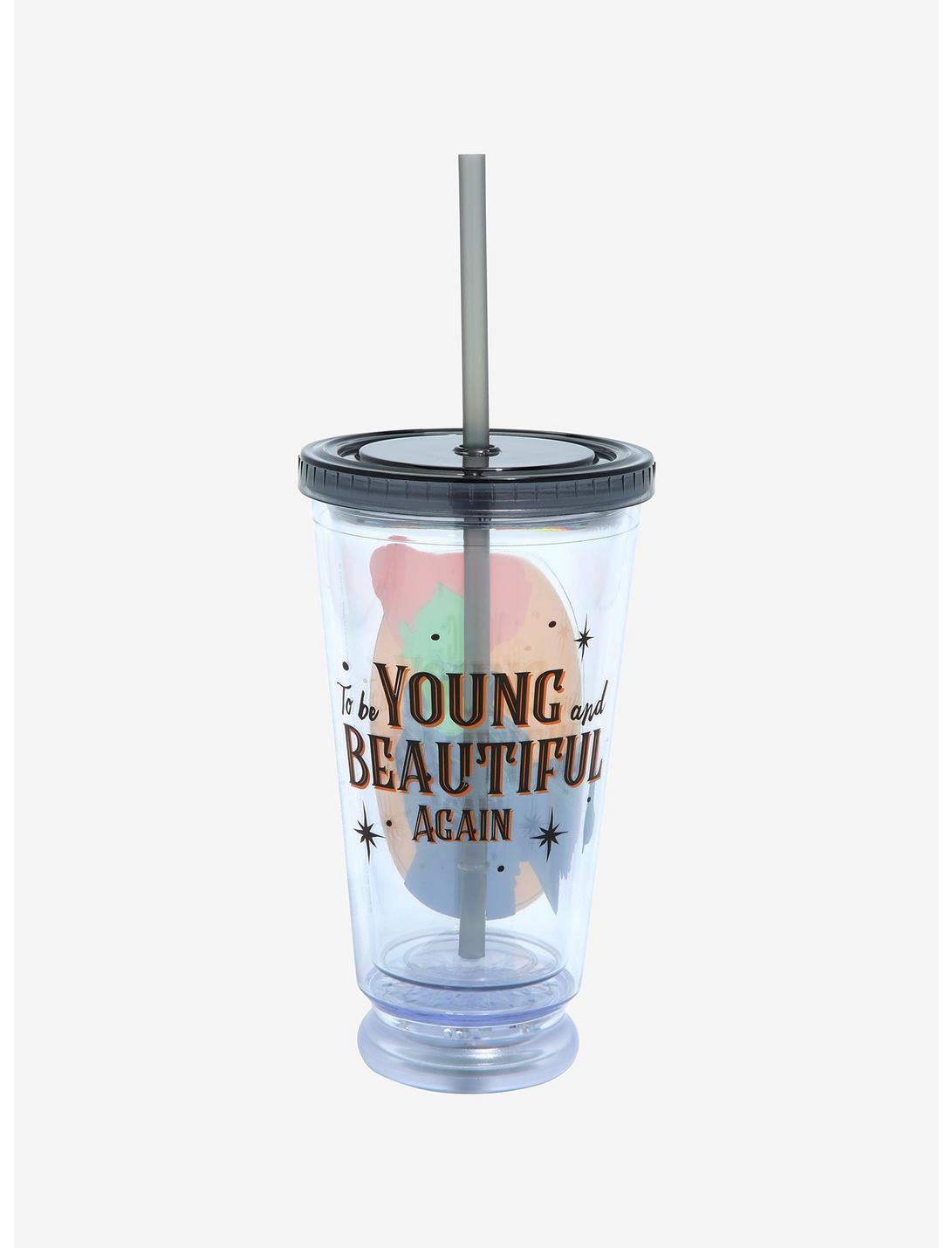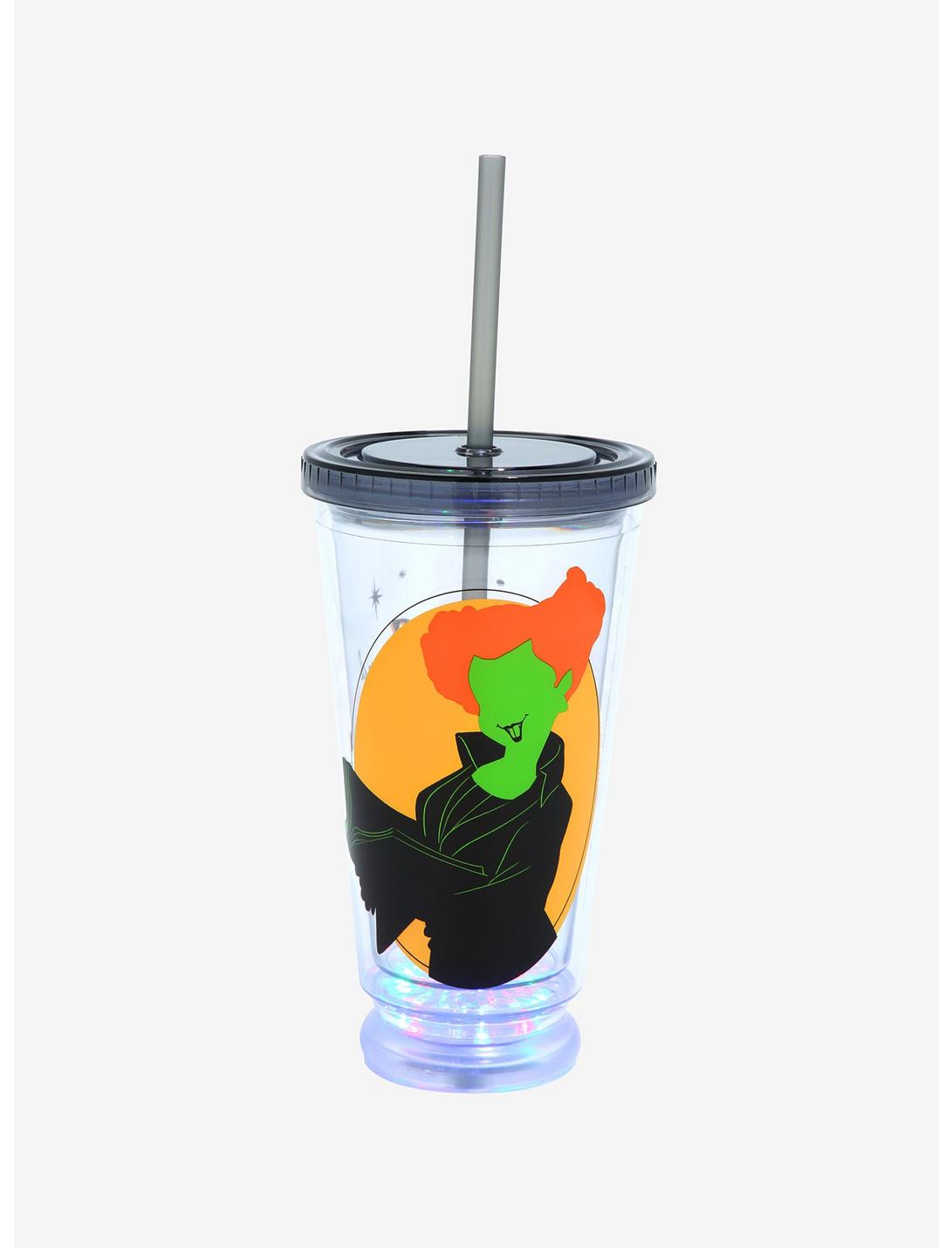 ¡Llévate tu Life Potion sobre la marcha con este vaso de viaje acrílico Hocus Pocus! Con una silueta colorida de Winifred Sanderson sosteniendo su libro en un lado y "To be young and beautiful again" en la parte posterior. Además, ¡la base se ilumina! Viene con una tapa de rosca y una pajilla reutilizable.