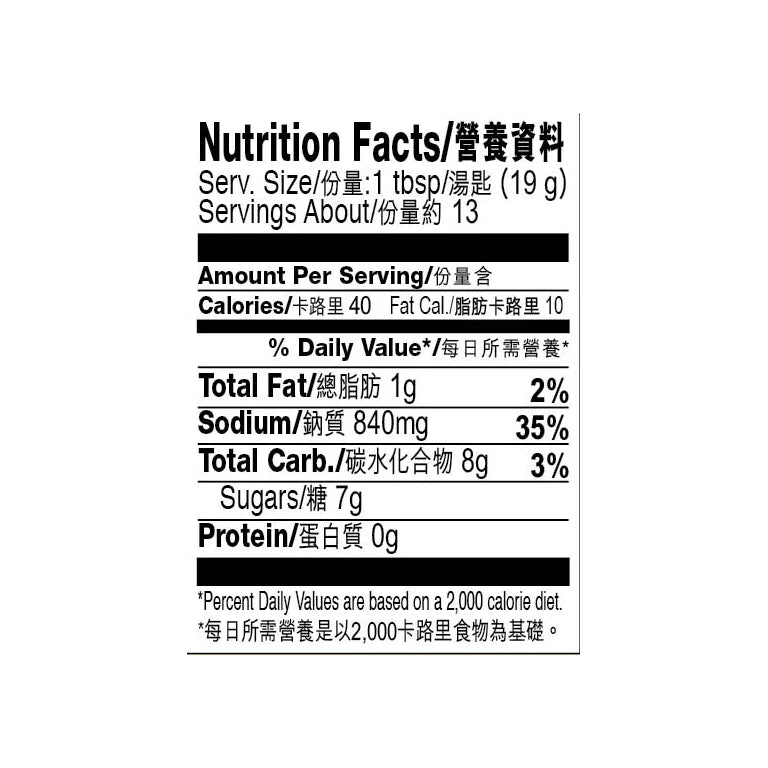 Mejora el sabor de algunas de tus comidas favoritas con la salsa Hoisin de Lee Kum Kee. Su sabor versátil lo convierte en una valiosa adición a su cocina. Puede usar la salsa hoisin embotellada en platos chinos clásicos, como el pato a la pequinesa o el cerdo moo shu y en una amplia variedad de otras comidas. O, si lo prefiere, marine carnes en él o viértalo en su salteado para agregar una dulce y deliciosa explosión de sabor. La salsa Lee Kum Kee Hoisin también agrega un sabor ácido cuando se usa como salsa de barbacoa para llevar su picnic familiar al siguiente nivel. Incluso puedes untar esta salsa hoisin dulce y picante en una pizza para darle un toque único y sabroso. Tiene 0g de grasas trans, sin colesterol y proporciona 90 calorías por porción. Viene en una botella de 20 oz para su conveniencia.