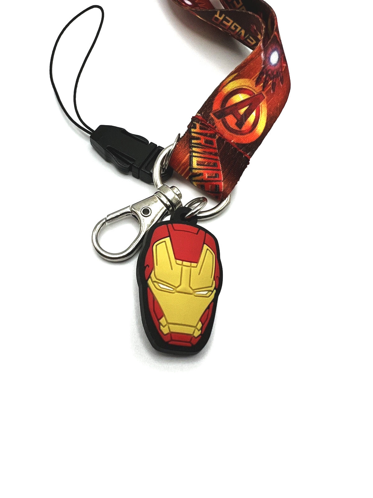 Diseño inspirado en Iron Man: Portagafete con diseño de Los Vengadores que incluye un dije del icónico casco de Iron Man.