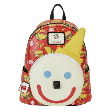¡Difundir la palabra! La mini mochila Loungefly Jack in the Box® Antenna Ball Jack está aquí para satisfacer tus antojos de moda en cualquier momento. Inspirado en la clásica mascota de la bola de antena del restaurante, el frente de este accesorio muestra la sonrisa, la nariz puntiaguda y el sombrero amarillo característicos de Jack. Un amuleto de cremallera de silicona con forma de bolsa de comida para llevar acompaña el bolsillo redondeado con cremallera de la mochila, y la cara de Jack brilla en la oscuridad para inspirar los refrigerios nocturnos. Un estampado integral cubre el resto de la bolsa con hamburguesas, papas fritas, paquetes de salsa y más del querido menú del restaurante. Con mucho espacio para guardar tus antojos, esta mini mochila dará en el clavo a la hora de diseñar tu próximo conjunto.
