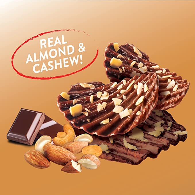 ¡Tu bocadillo clásico acaba de mejorar! Esta creación es una experiencia como ninguna otra. Pruebe un chocolate dulce a medida que se derrite y cubre cada papila gustativa con un crujiente como ningún otro mientras le da un mordisco a la chispa. ¡Te hace volver por más! Las patatas seleccionadas se cultivan en suelos volcánicos fértiles. Luego se cortan en rodajas finas y arrugadas para crear un crujido definitivo. Luego se cubren con delicioso chocolate derretido y se rematan con una guarnición de trocitos de almendras y anacardos. ¿Quién puede resistirse?