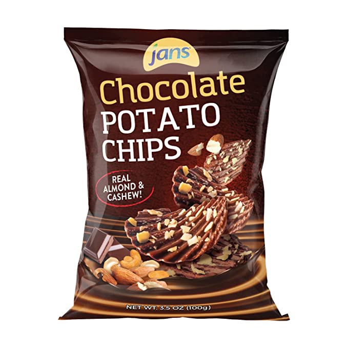 Jans - Chocolate Covered Potato Chips con Pedazos de Almendras y Nueces, 3.5oz