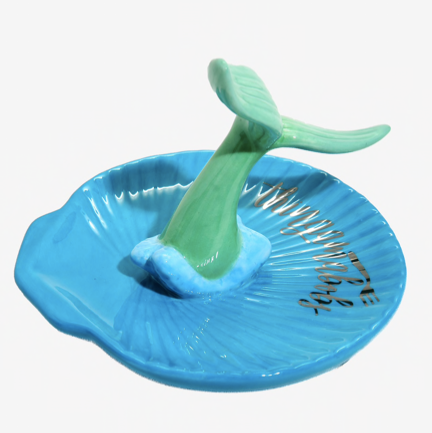 ¿Necesitas un lugar para tus joyas? ¡Tendrás mucho espacio con esta bandeja de joyería de cerámica inspirada en La sirenita de Disney! Con la cola de Ariel con una bandeja en forma de concha, esta pieza organizativa tiene espacio para sus anillos, collares y más.