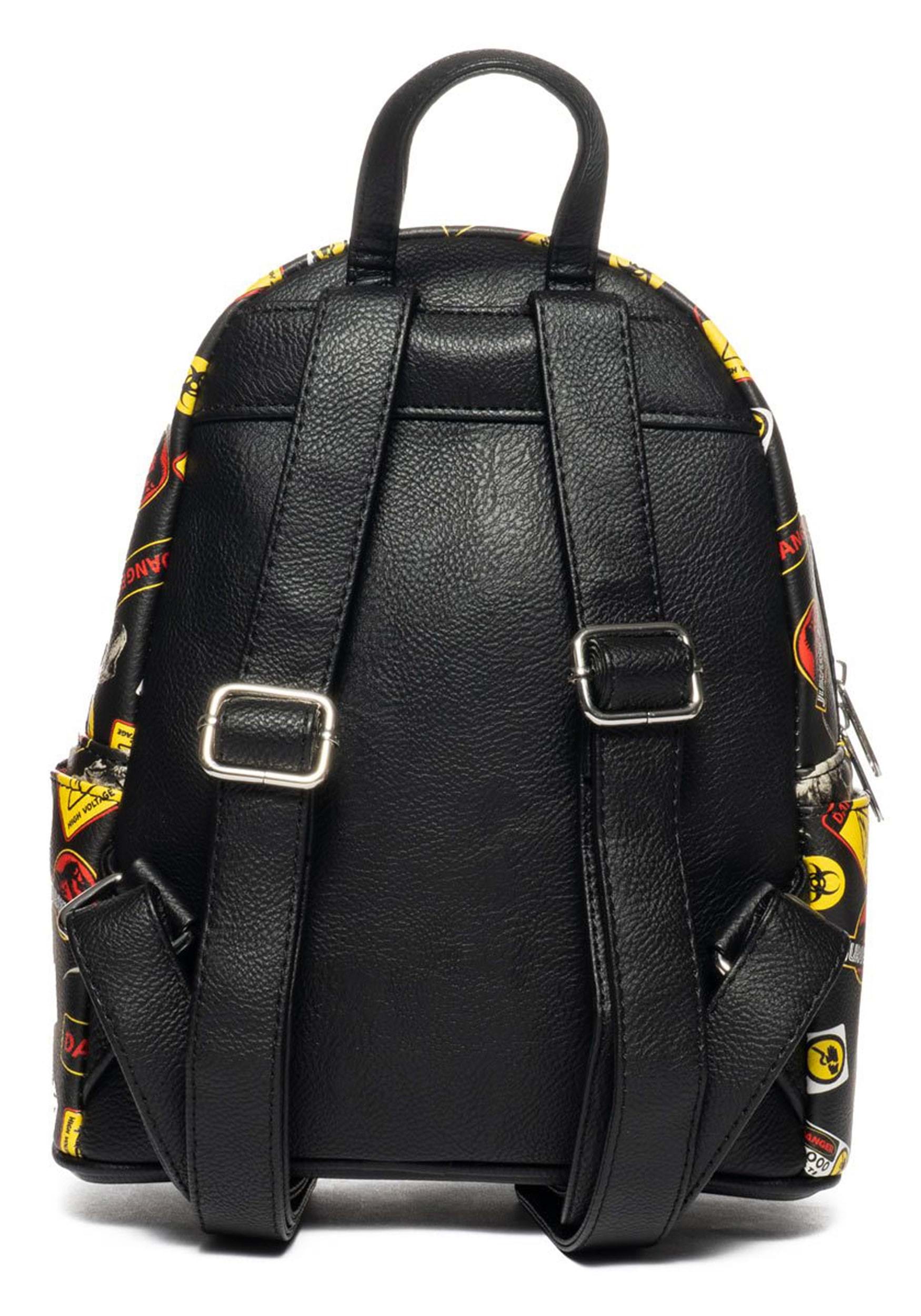 ¡Yay, es tiempo de excursión! A todo el mundo le encanta pasar un día explorando el parque temático más nuevo y más grande. Sin embargo, este es un poco único, porque en los días malos tienes un noventa y cinco por ciento de posibilidades de que te coman. ¡Probablemente debería prestar mucha atención a los carteles publicados! Detalles de producto Celebre los escalofríos y las emociones de su serie de películas favorita usando una minimochila con licencia oficial de Jurassic Park Warning Signs de Loungefly. La mochila de piel sintética está impresa por todas partes con imágenes del logotipo de Jurassic Park, T-Rexes, aves rapaces y señales de advertencia.