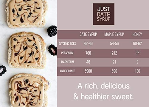 Jarabe Just Date: Endulzante orgánico de dátiles | Una botella exprimible de 8.8 oz I Bajo índice glucémico, vegano, paleo | 1 Ingrediente : 100% Dátiles Medjool Orgánicos