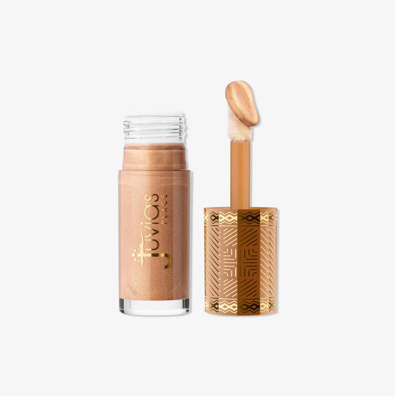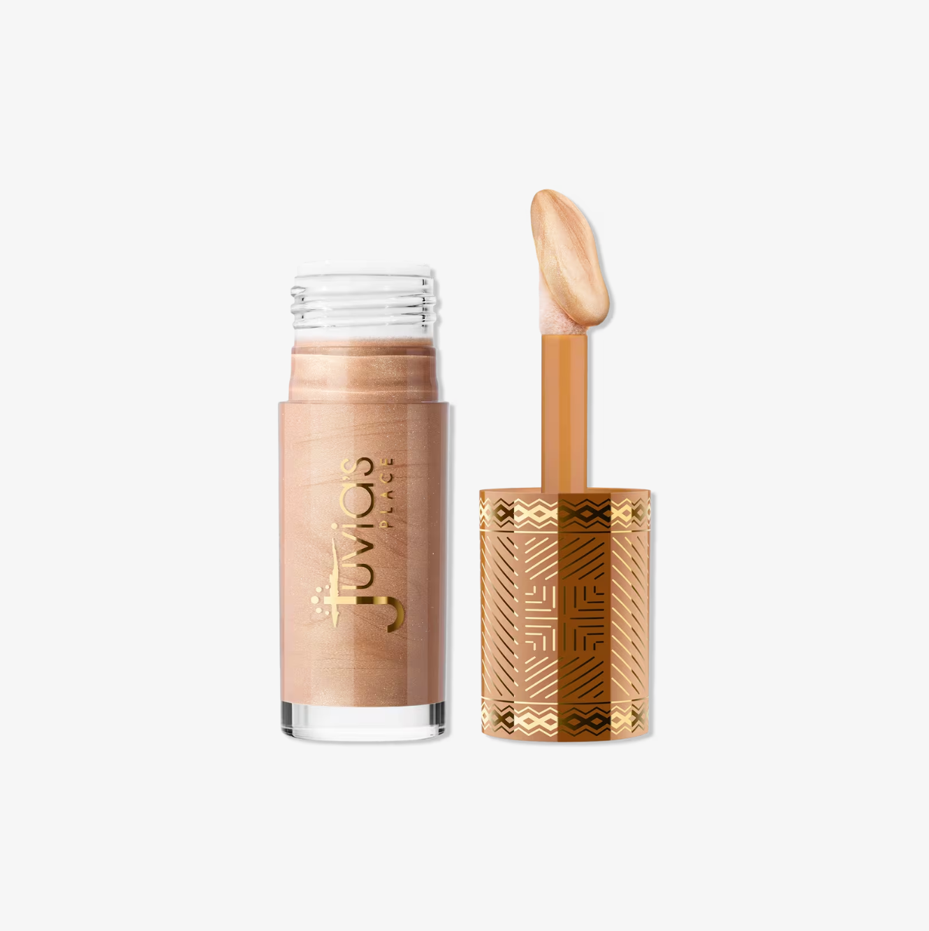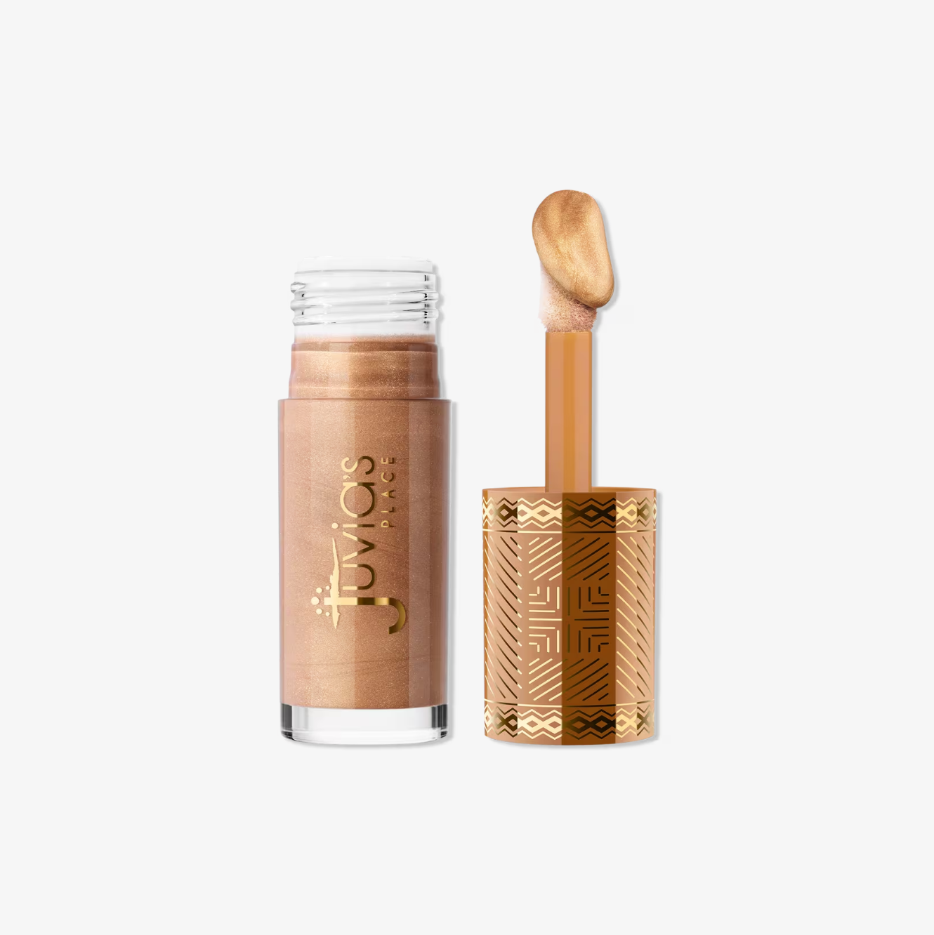 El Nubian Glow Liquid Luminizer de Juvia's Place es un iluminador líquido ligero que se difumina con facilidad, dejando la piel con un brillo natural desde el interior. Su fórmula luminosa contiene escualano, que ayuda a mantener la piel hidratada y con un resplandor saludable.