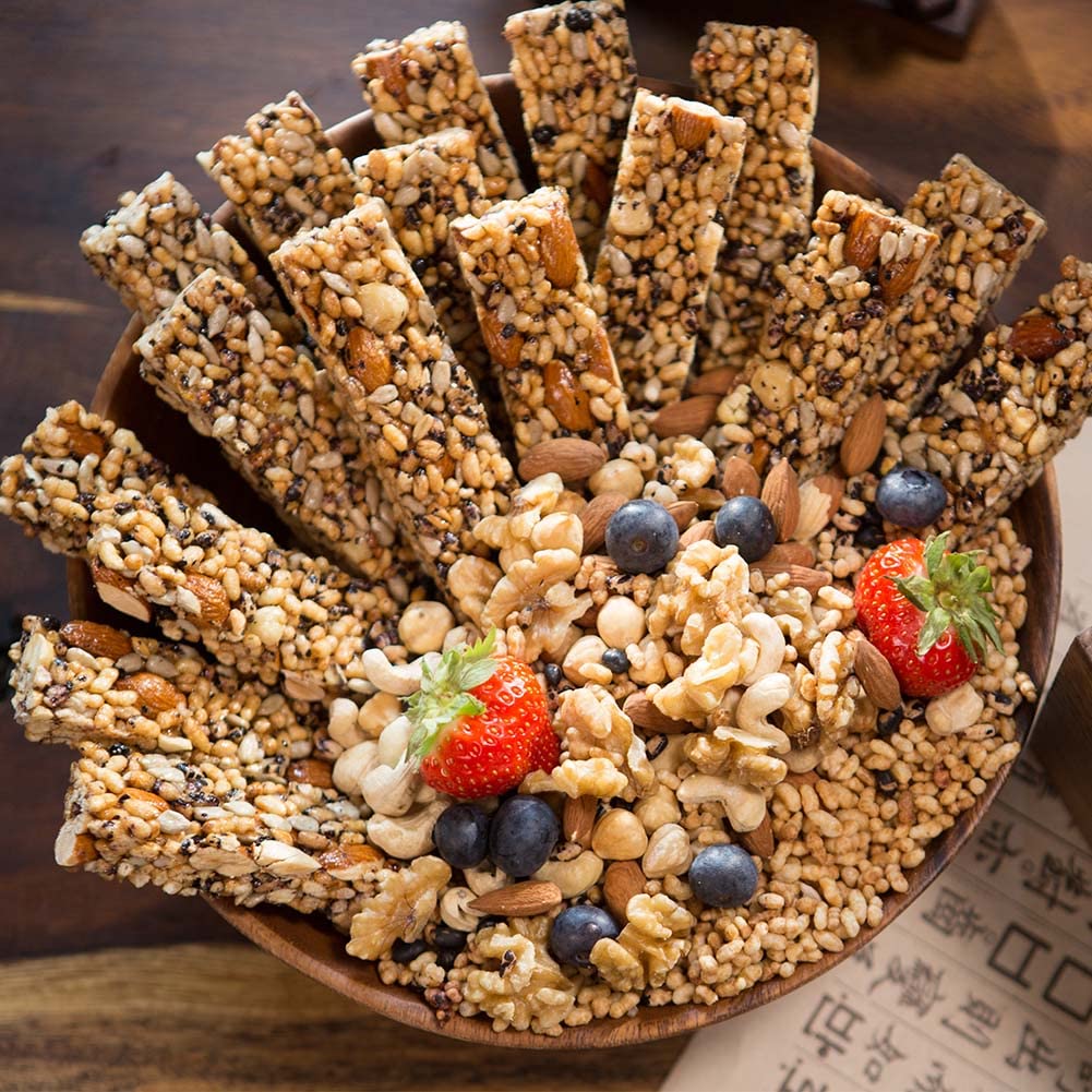 🍯 Merienda sin azúcar hecha con el maestro de comida de Corea Jocheong. El sabor dulce solo proviene del jarabe especial del maestro hecho con jocheong de arroz maestro y 7 tipos de frutas. Este jarabe dulce se mezcla con cereales y frutos secos utilizando una técnica de tostado que puede evitar que se destruya la nutrición.