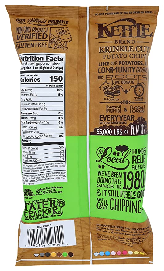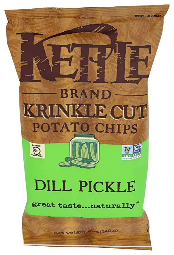 Kettle Brand Potato Chips, Krinkle Cut Dill Pickle Chips, 5 Oz
