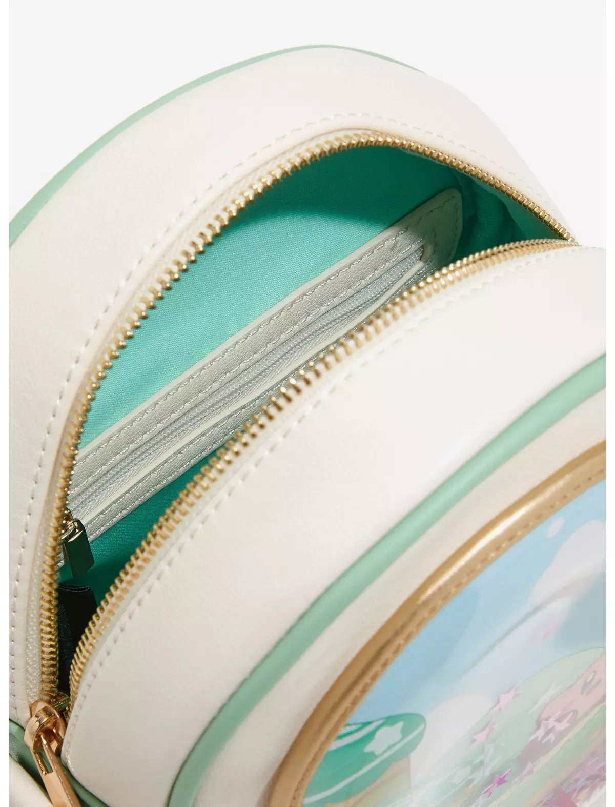 ¡Sube de nivel tus accesorios con este bolso inspirado en Kirby! Este bolso, que presenta un retrato del puffball, incluye un bolsillo frontal de plástico con confeti de estrellas y una correa cruzada extraíble.