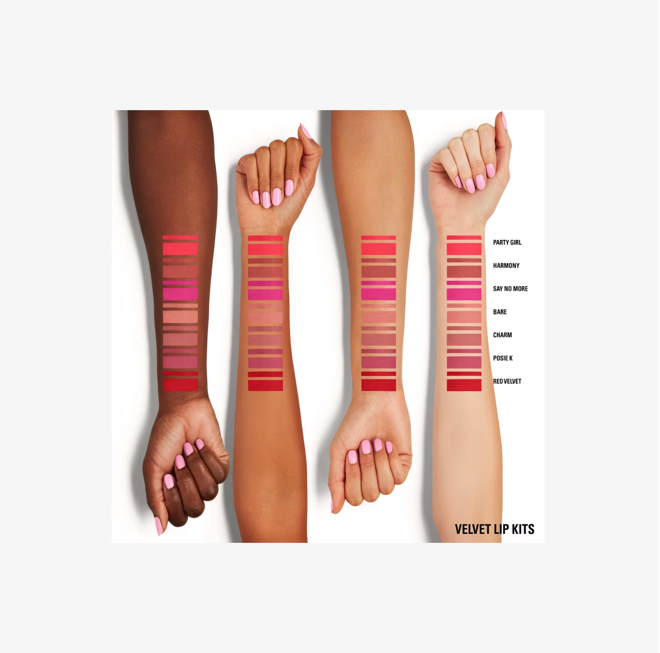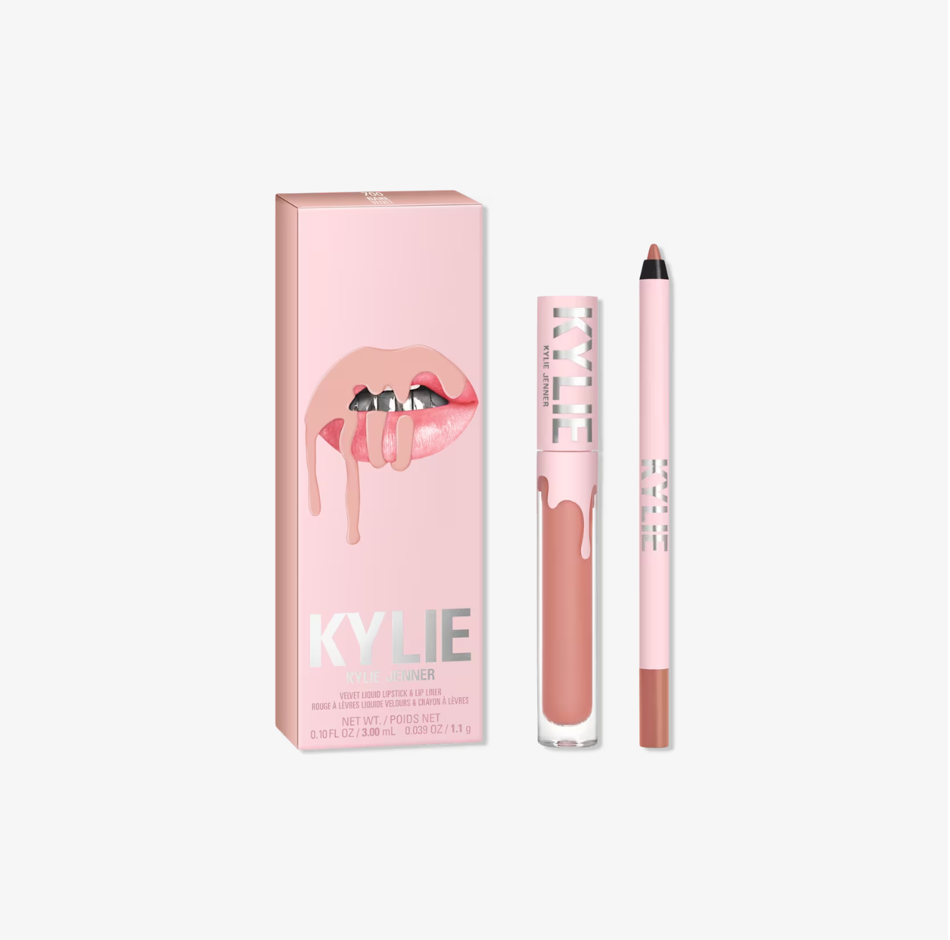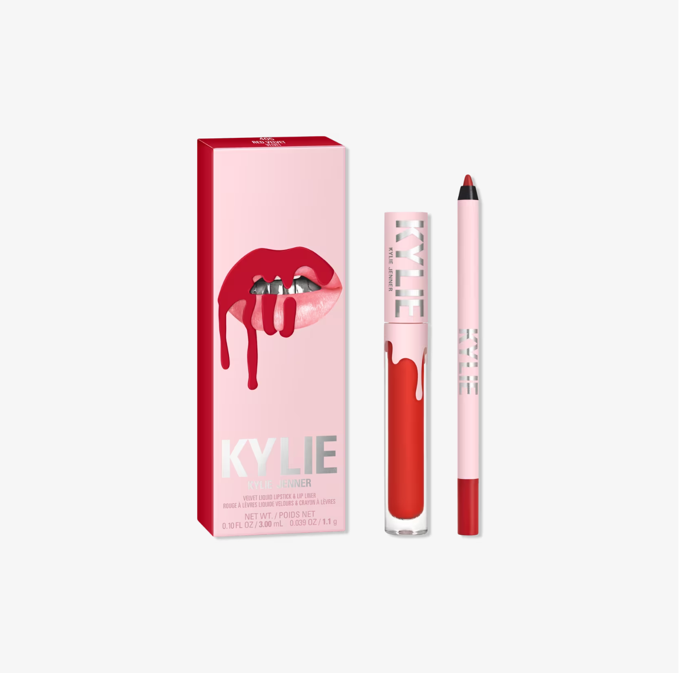 El Velvet Lip Kit de Kylie Cosmetics es el dúo perfecto para lograr unos labios con acabado aterciopelado, semi-mate y resistentes a las manchas. Cada kit incluye el nuevo labial líquido Velvet, altamente pigmentado, junto con el delineador de labios de larga duración favorito de los fans. Disponible en siete tonos fáciles de usar, es tu rutina lista en un solo paso.