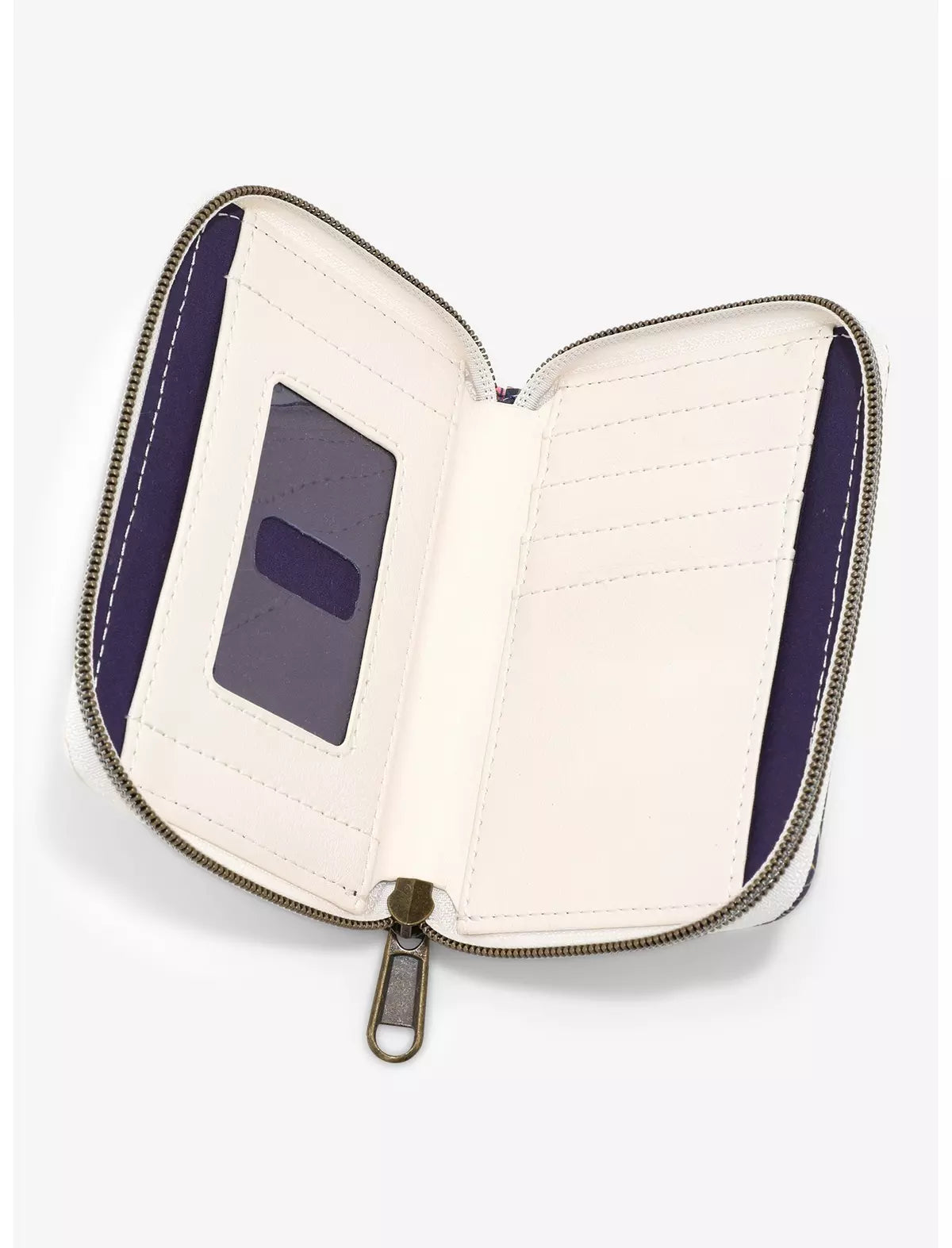 Después de una agitada velada de baile, ¡relájate leyendo un buen libro con amigos! De La Bella y la Bestia, esta billetera con cremallera muestra a Bella con su vestido de gala, leyendo un libro con la Sra. Potts y Chip. la parte posterior presenta un estampado integral de libros y rosas. Viene con 5 ranuras para tarjetas y una pantalla de identificación clara.