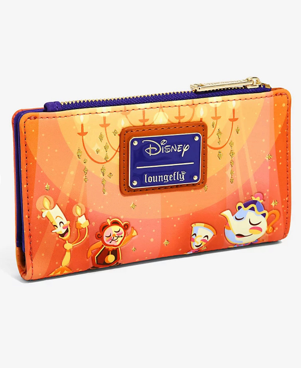 ¡Únete a Bella y Bestia en un baile con el gráfico maravillosamente estilizado en esta billetera Loungefly Disney!