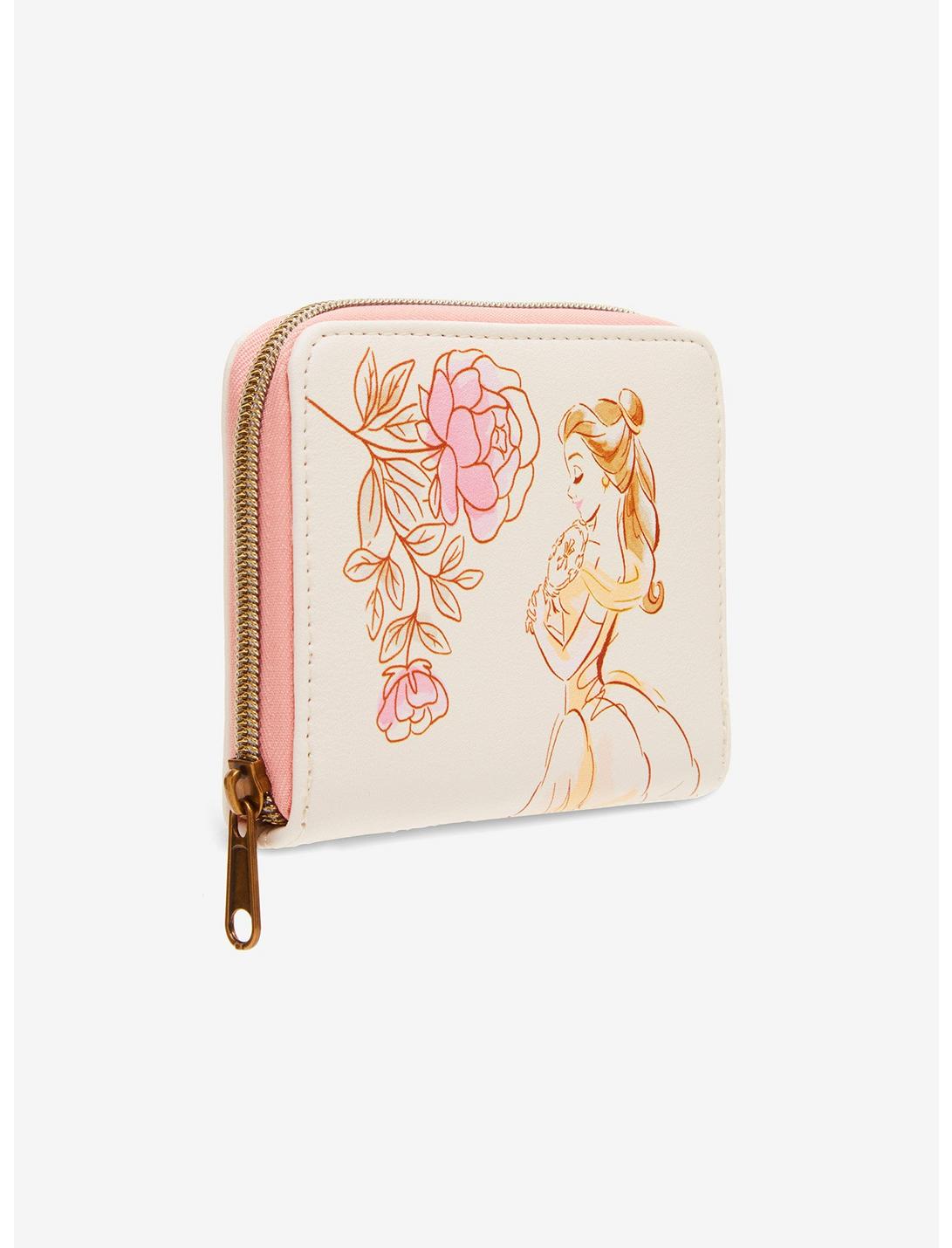 Capture la delicada feminidad de Bella de La Bella y la Bestia con esta mini billetera con cremallera, que tiene un color crema y rosa rubor, y está decorada con rosas y una imagen de Bella sosteniendo un espejo. Ranuras para efectivo y tarjetas, y una pantalla de identificación clara.