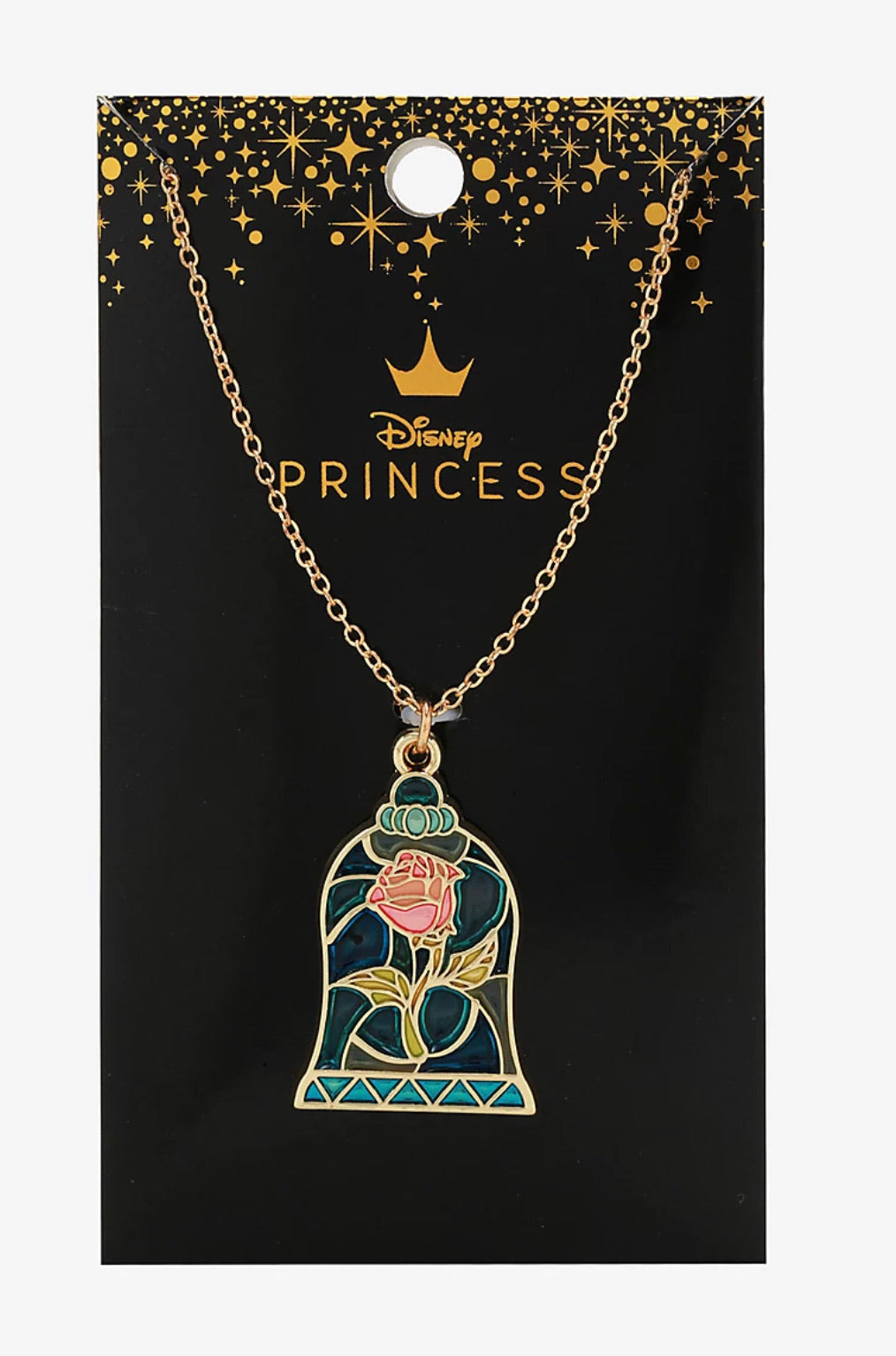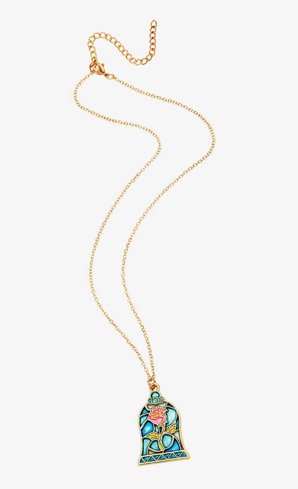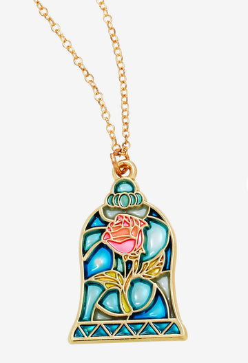 Beast quiere que la rosa encantada se mantenga en el ala oeste, ¡pero puedes usar este collar dorado en cualquier lugar que desees! Con todos los pétalos intactos, la rosa mágica de La Bella y la Bestia de Disney aparece en este dije inspirado en vidrieras, que cuelga de una cadena con cierre de mosquetón.