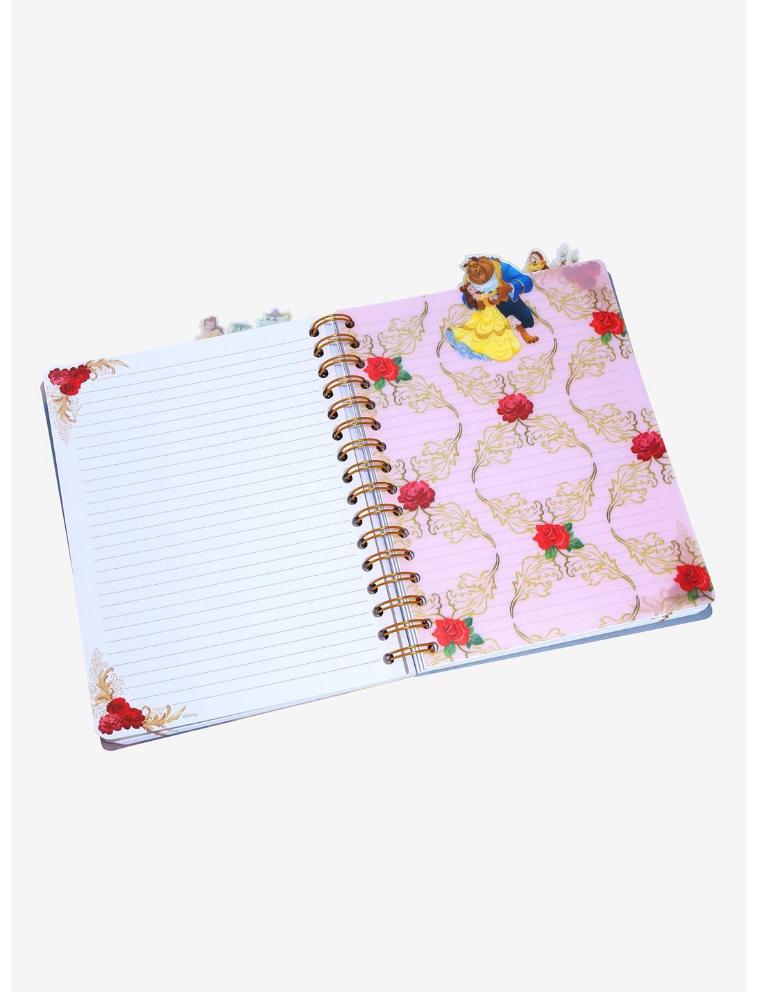 ¡A este diario con pestañas le encantaría ser su invitado como parte de su colección de artículos de papelería! Inspirado en el clásico animado de Disney, La bella y la bestia, este diario presenta una portada decorada con flores de la icónica escena de baile de salón de la película. Bella y Bestia también aparecen como los separadores de pestañas superiores junto con la Sra. Potts, Chip, Cogsworth y Lumiere para ayudar a mantener su lista de lectura, recetas de Grey Stuff y otras notas organizadas.