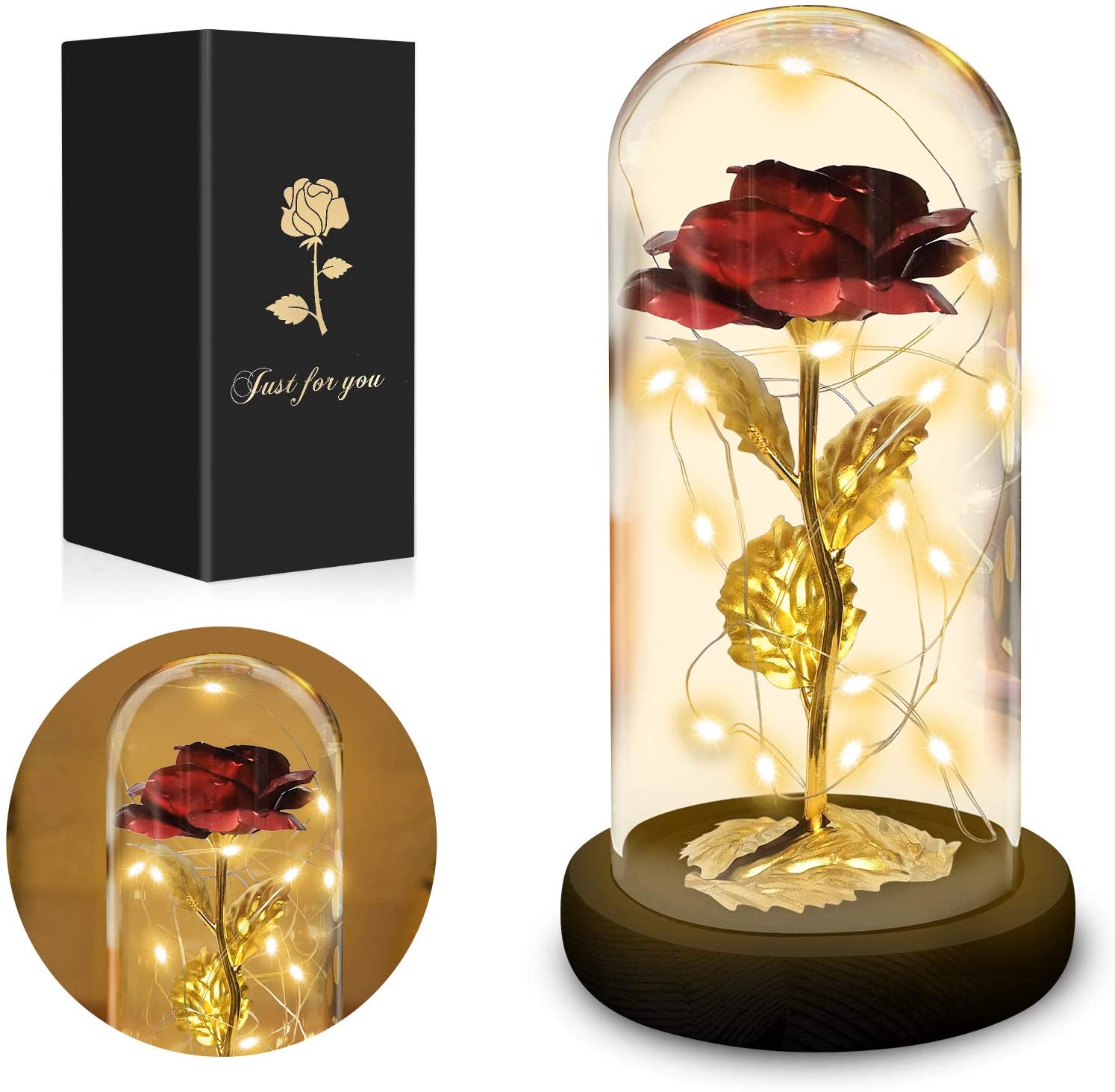 La Bella Y La Bestia Flor Artificial Dorada Luces