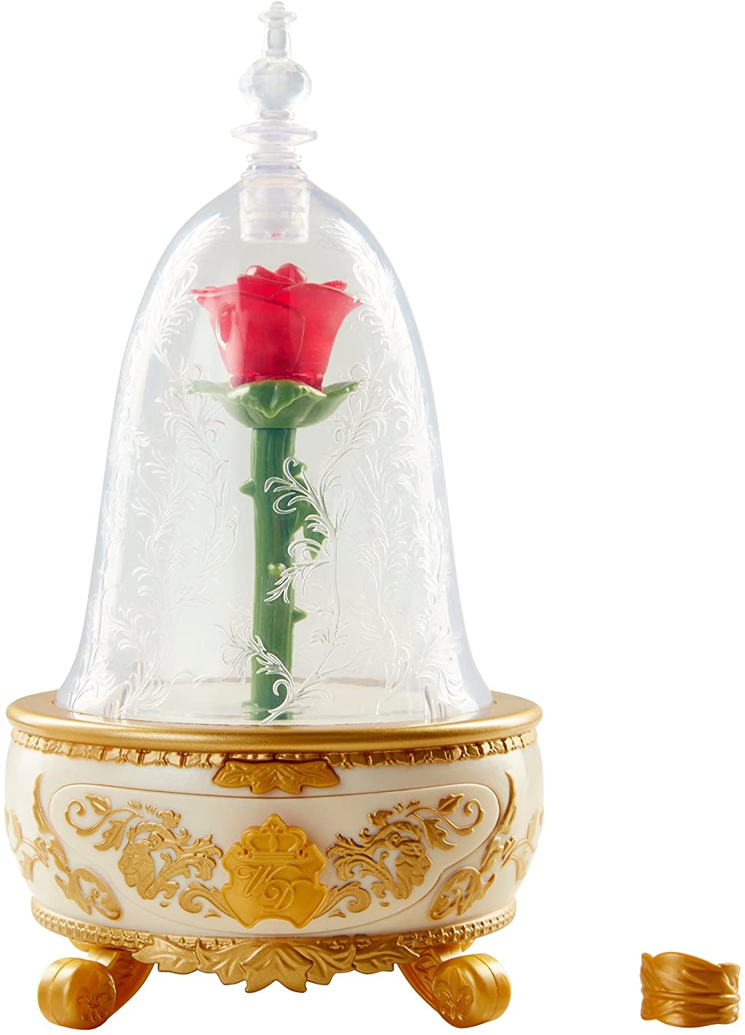 Caja de joyería de rosa encantada le da a tu princesa un lugar especial para guardar sus pequeños tesoros. Experimenta la belleza y la magia una y otra vez mientras la rosa de Belle se abre, cierra y enciende la icónica canción Bella y la Bestia.