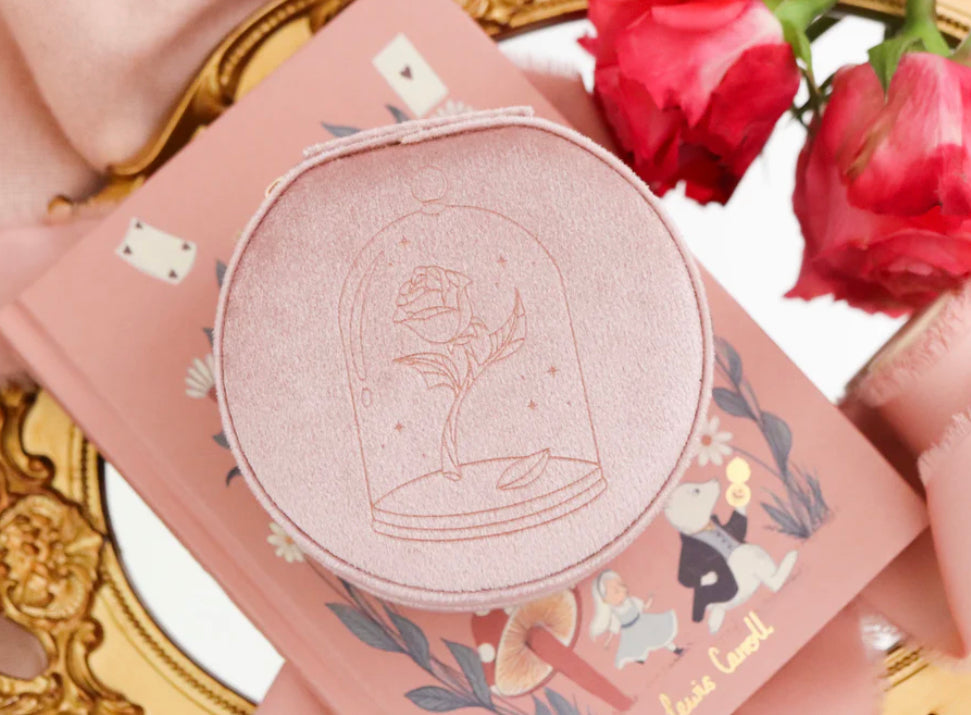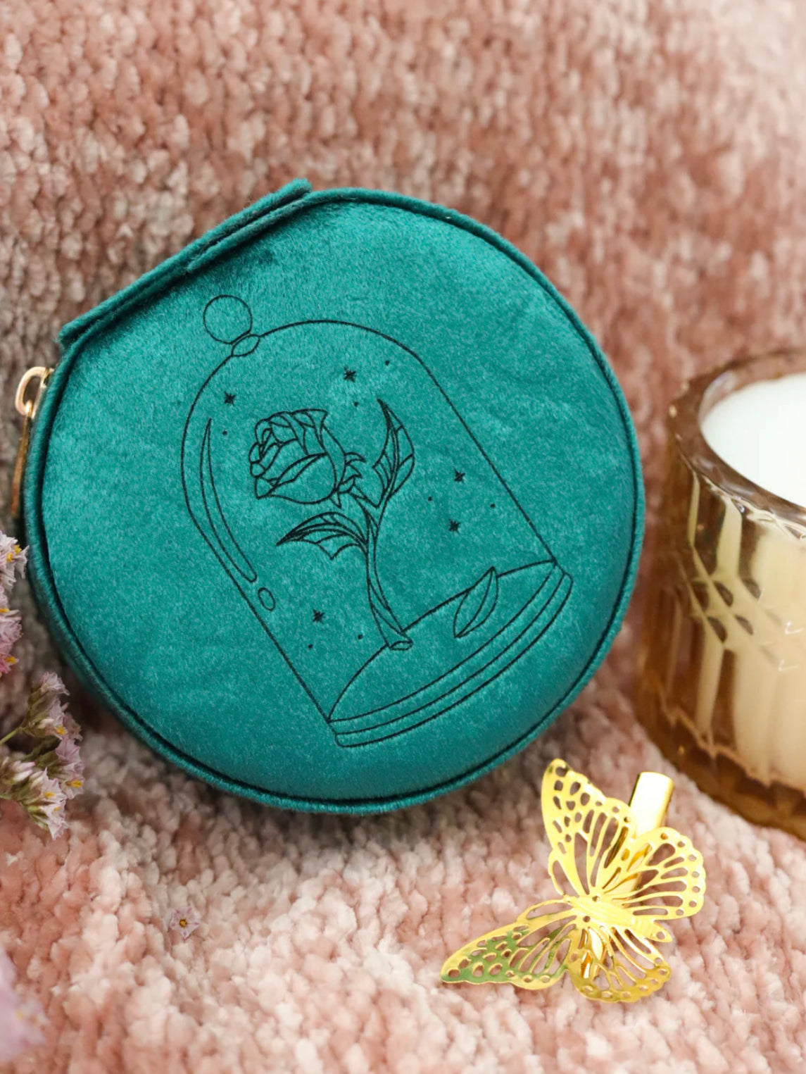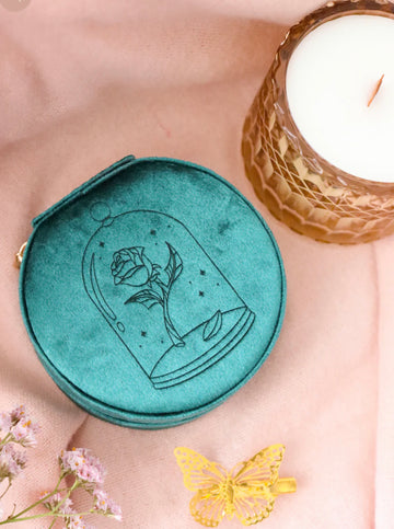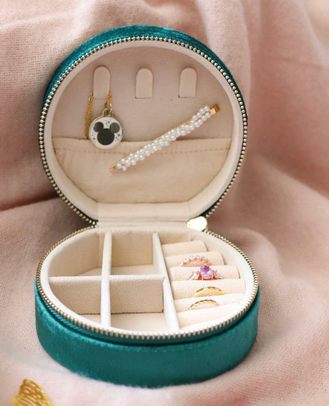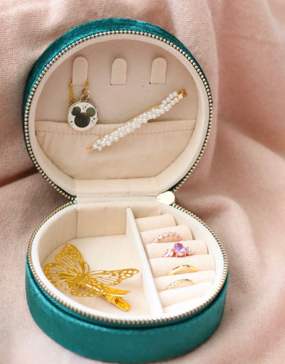 ✦TAMAÑO: 4" x 4" x 2" ✦Joyero redondo de terciopelo grabado ✦Para tus joyas y pequeños recuerdos.