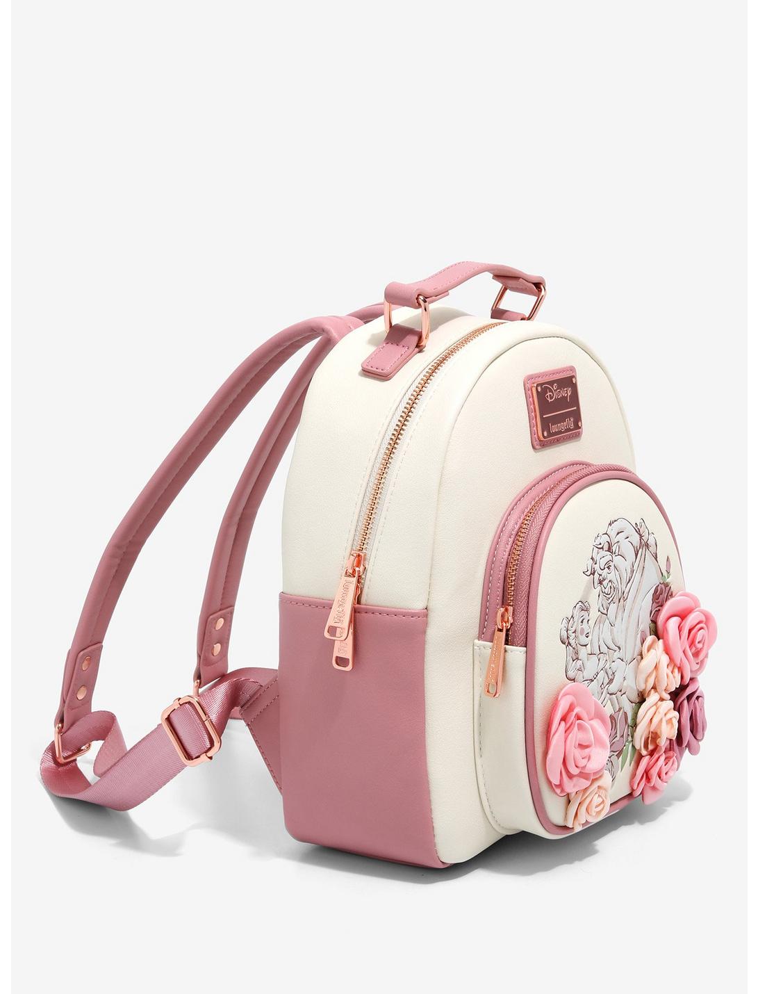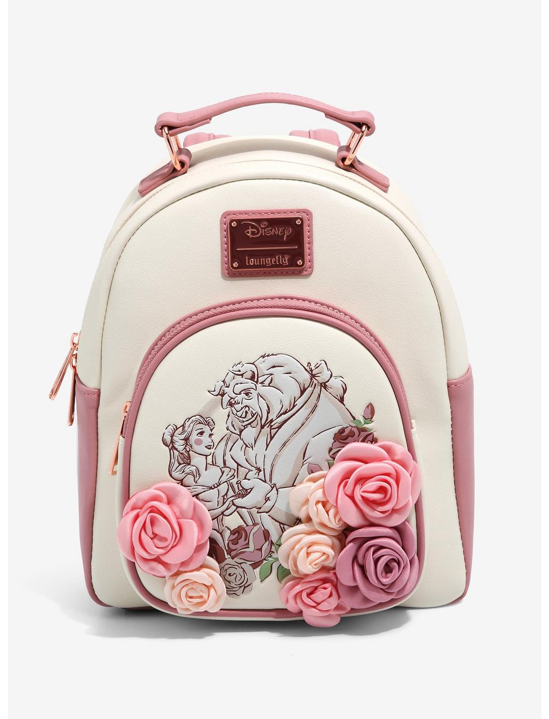 ¡El amor salta de esta minimochila en forma de apliques de rosas figurativas! Bella y la Bestia aparecen en un majestuoso gráfico inspirado en un retrato, rodeados de detalles florales en 3D. Esta bolsa también cuenta con una insignia esmaltada de la marca, compartimentos frontal y principal con cierre, correas ajustables para los hombros, un bolsillo interior con cierre y un forro interior con tema de rosas.