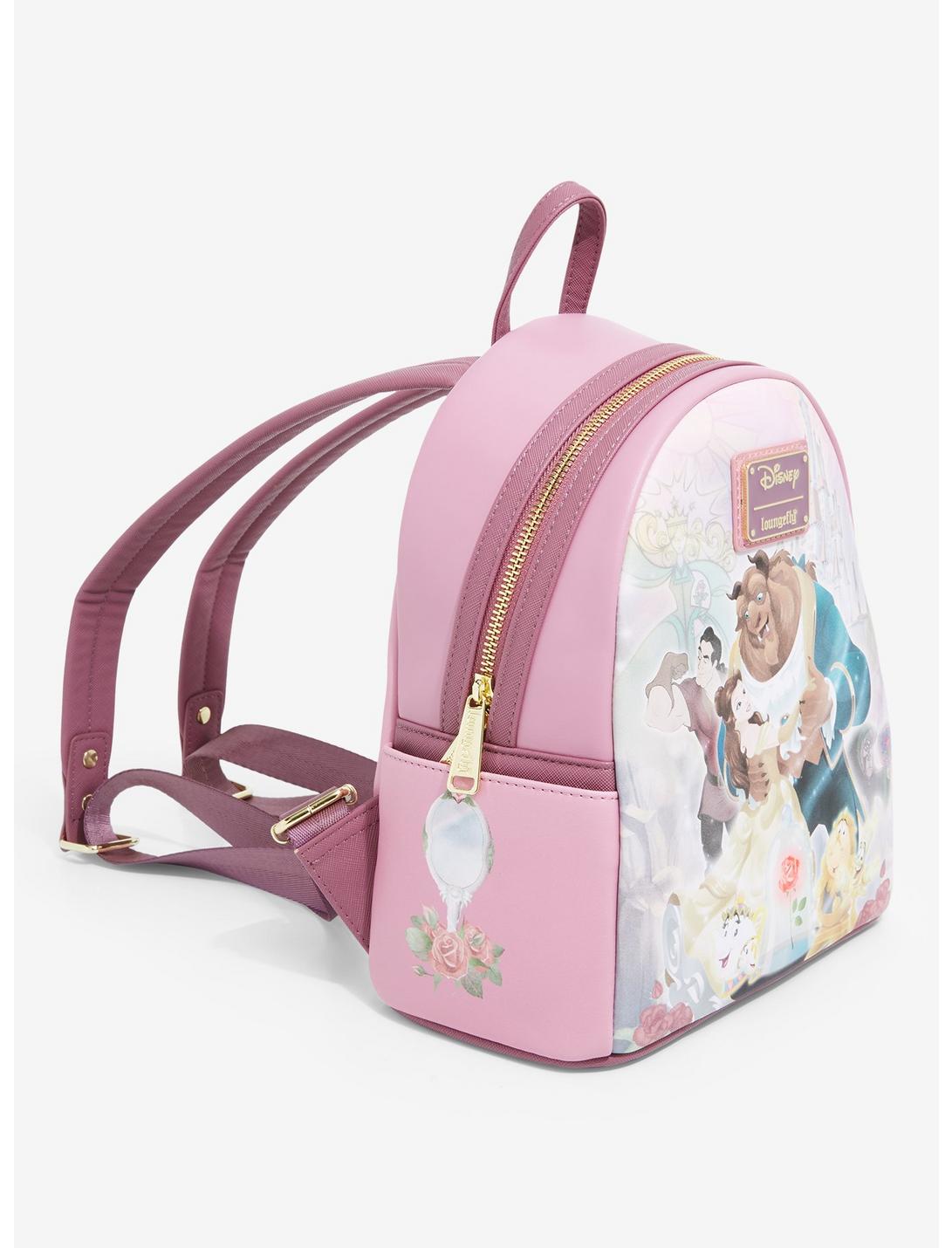 ¡Trae un cuento tan antiguo como el tiempo a tu colección con esta mini mochila inspirada en La Bella y la Bestia! Con un retrato de Bella y Bestia rodeado por otros personajes e íconos de la película en el frente, este bolso incluye bolsillos laterales, un retrato trasero de la Sra. Potts y Chip y correas ajustables, perfecto para agregar un poco de magia a tu look.