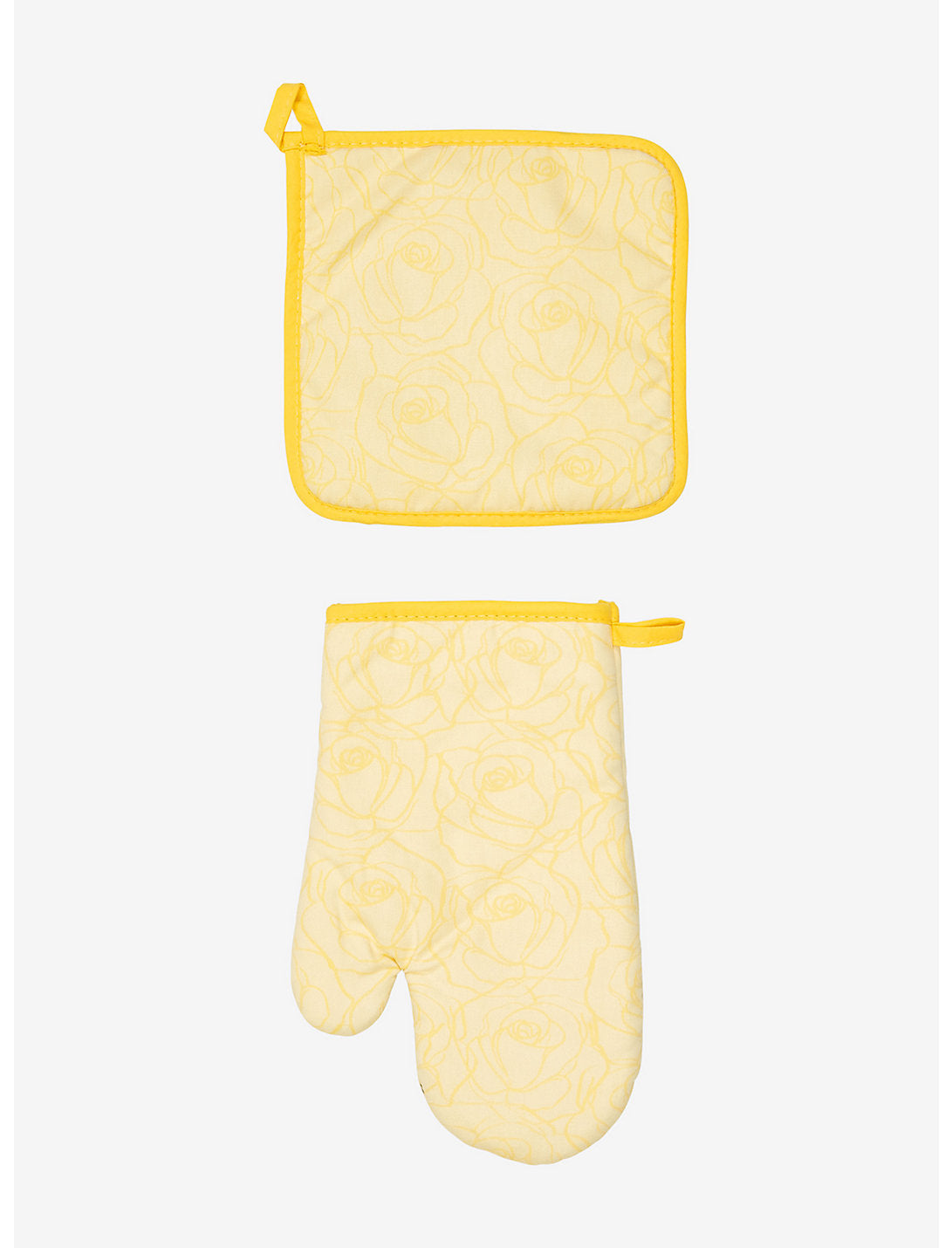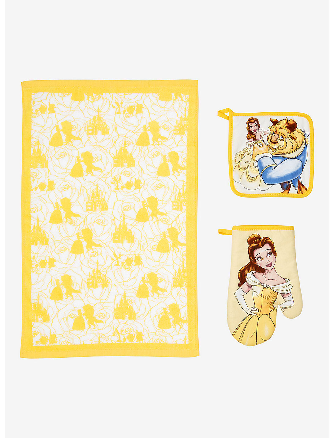 Ya sea que esté preparando ragú de res, soufflé de queso o pastel y pudín “flambeados”, ¡puede canalizar al personal de cocina en el palacio de Beast con este juego de cocina inspirado en La Bella y la Bestia de Disney! Con un estampado completo de siluetas de varios íconos de la película en la toalla de cocina, Belle toma el frente y el centro con su legendario vestido amarillo en el guante para horno, mientras que Beast se une a ella en el agarrador.