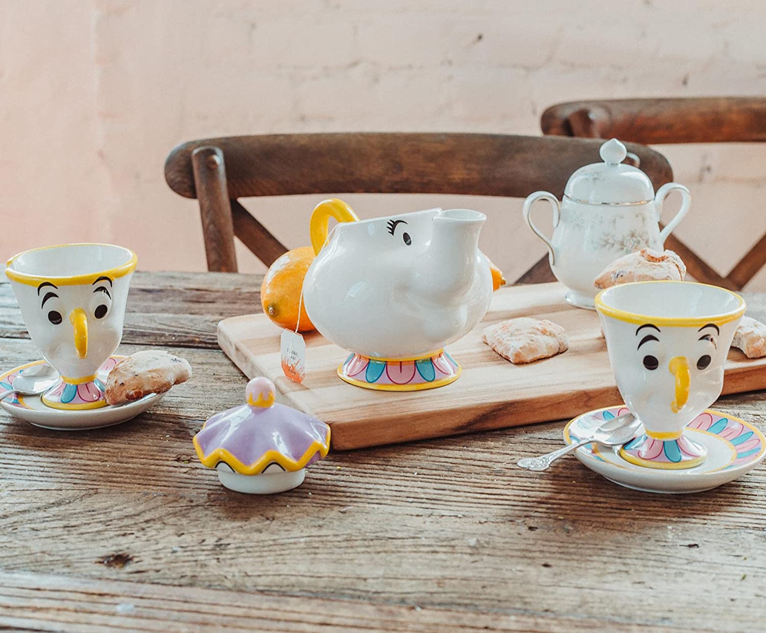 - Un verdadero espectáculo: rompe la maldición con este juego de té de personajes de la Bella y la Bestia de Disney. Disfruta de una taza de té perfecta para dos la próxima vez que te sientas para ver tu clásico favorito de cuento de hadas de Disney.
