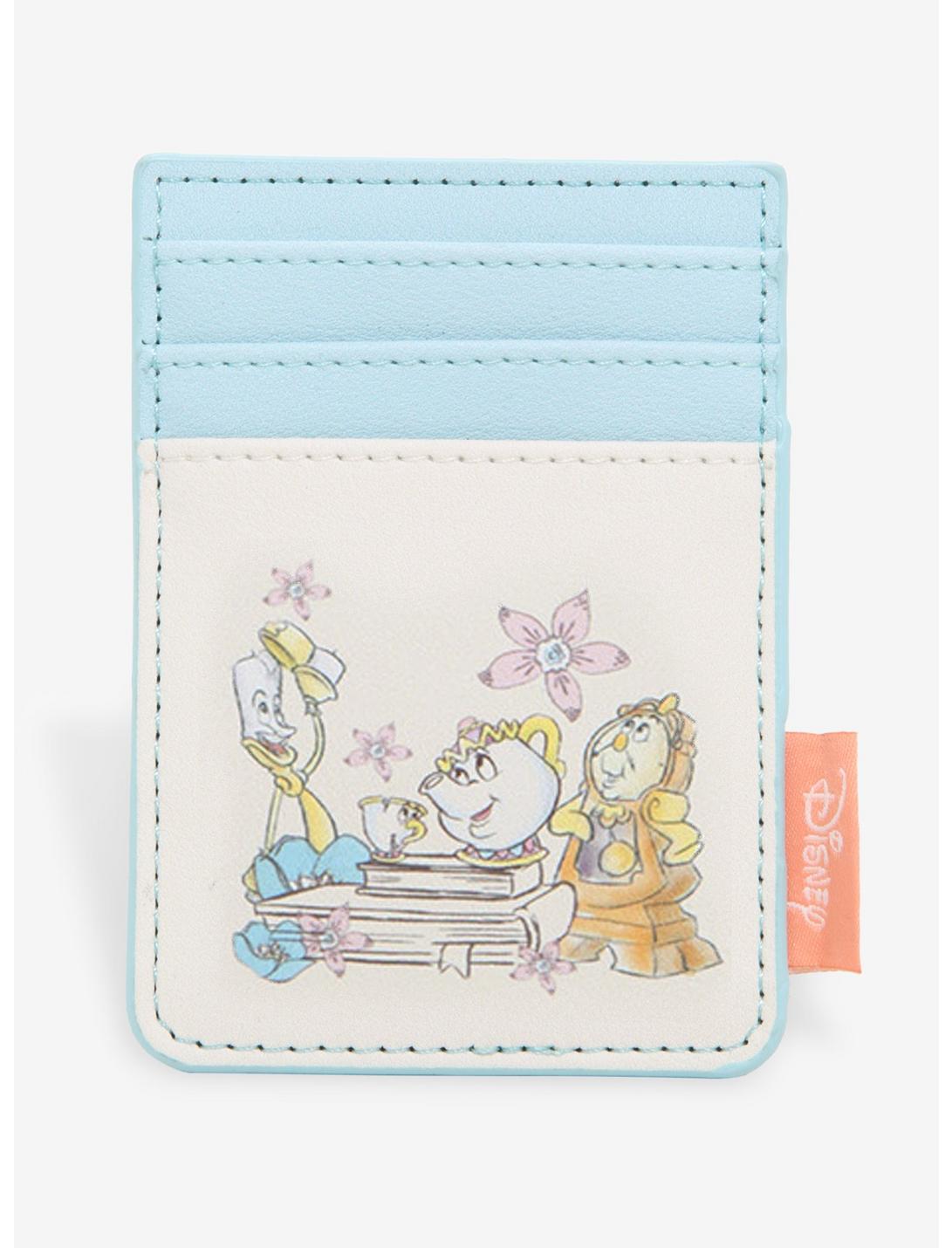 ¿Vas a la librería? ¡Asegúrate de llevar todas tus tarjetas esenciales contigo! Los objetos encantados de La Bella y la Bestia están listos para acompañarte en tu viaje hacia el gran lugar con este tarjetero vertical. Lumière, Chip, Mrs. Potts y Cogsworth están impresos en un estampado inspirado en la acuarela con flores a su alrededor. Viene con 3 ranuras para tarjetas y una ranura transparente para identificación en la parte posterior.