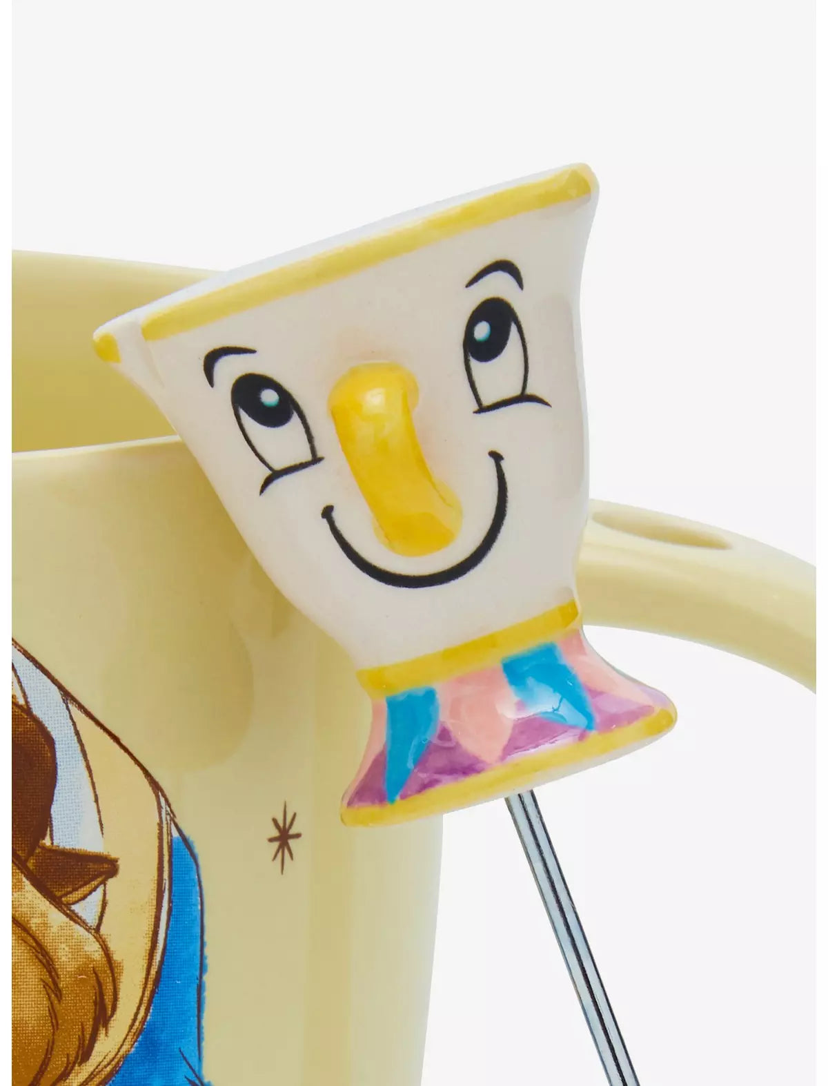 ¡Es la hora del té en el castillo! Esta taza de La Bella y la Bestia presenta a Bella en un lado y a la Bestia en el otro, mientras que el agitador está rematado con Chip, la taza de té. ¡Es imprescindible para beber mientras se lee un buen libro!