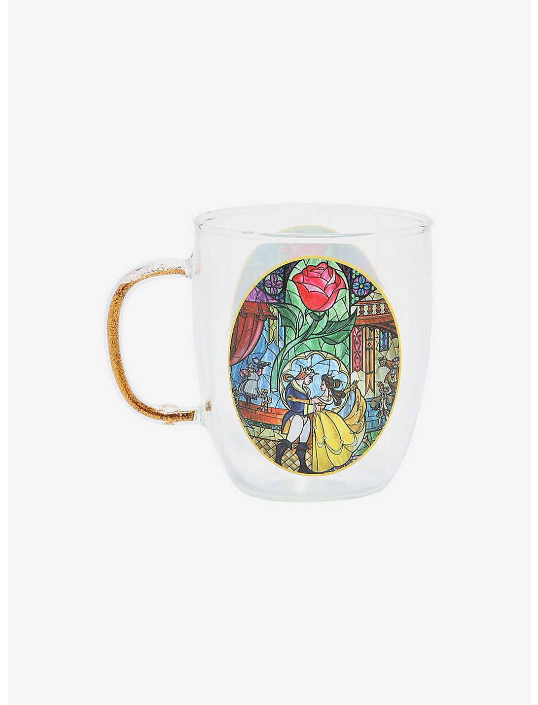 La Bella y La Bestia Taza Cristal Glitter