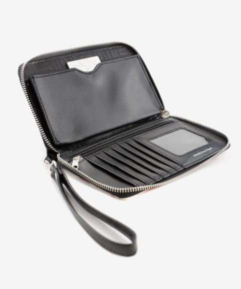 Esta billetera con cremallera está hecha de cuero vegano de primera calidad. Mide 7.5x4.5x1.0 pulgadas. ¡La organización interna cuenta con espacio para su teléfono y todos sus elementos esenciales!