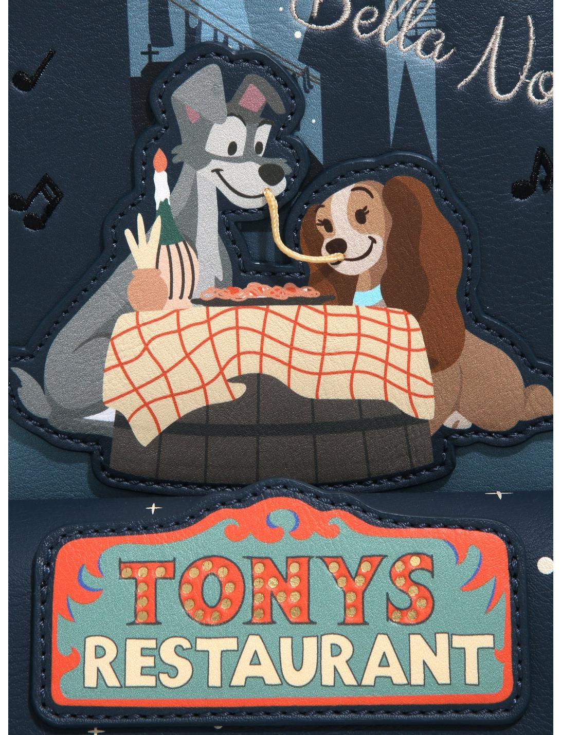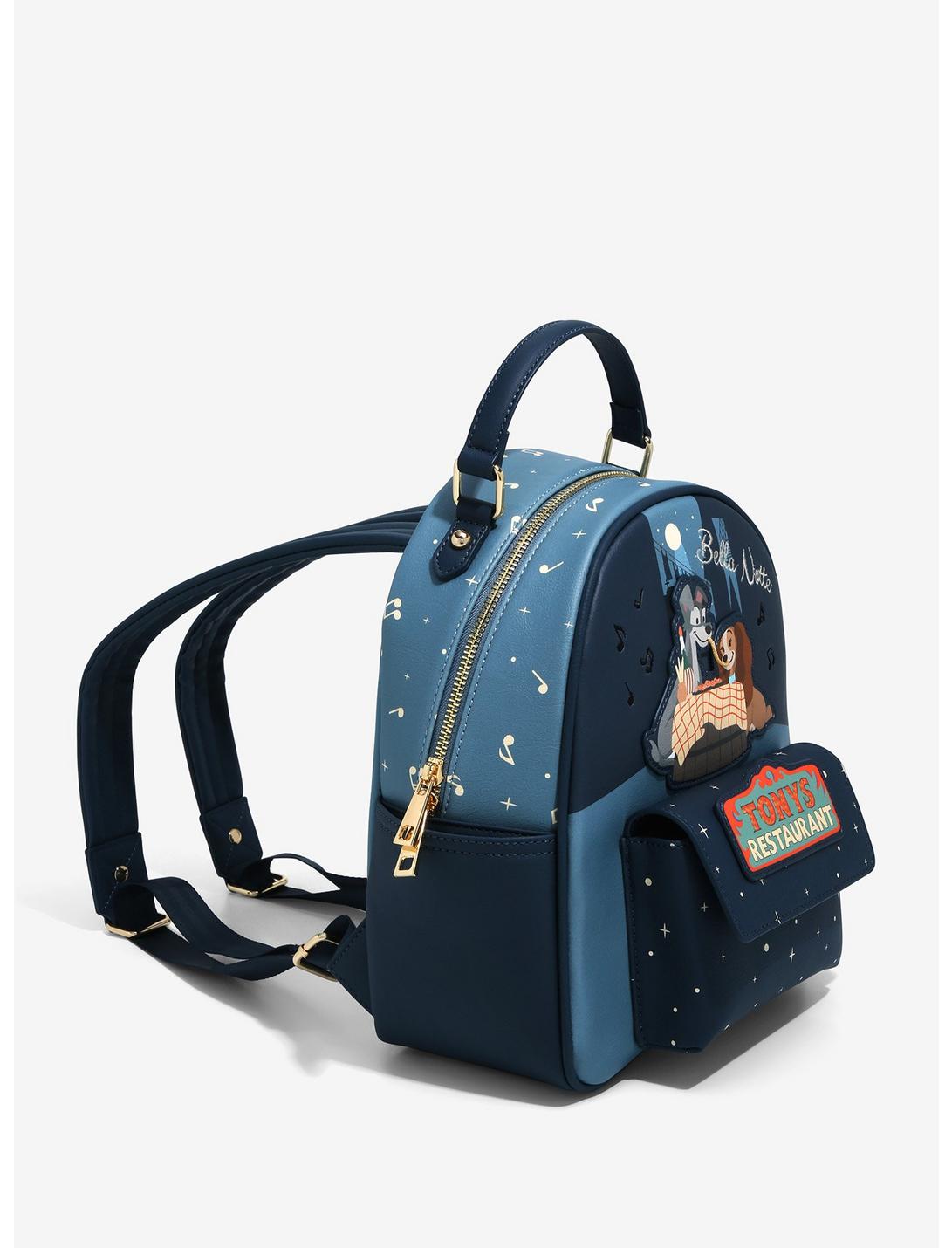 ¡Viaja por las maravillosas noches de Bella Notte y más allá con esta minimochila de Disney Lady and the Tramp! Con un gráfico escénico estrellado en el lienzo frontal con aplicaciones troqueladas del letrero de Tony's Restaurant y la icónica escena de espagueti de la película (¡con un detalle de cuerda que toma el lugar de los fideos de espagueti!), esta bolsa de Our Universe es la compañera de viaje perfecta. para todas tus aventuras gastronómicas. También cuenta con dos bolsillos laterales, herrajes dorados, correas ajustables para los hombros, notas musicales bordadas y letras "Bella Notte", y un forro interior con diseño de estrellas.