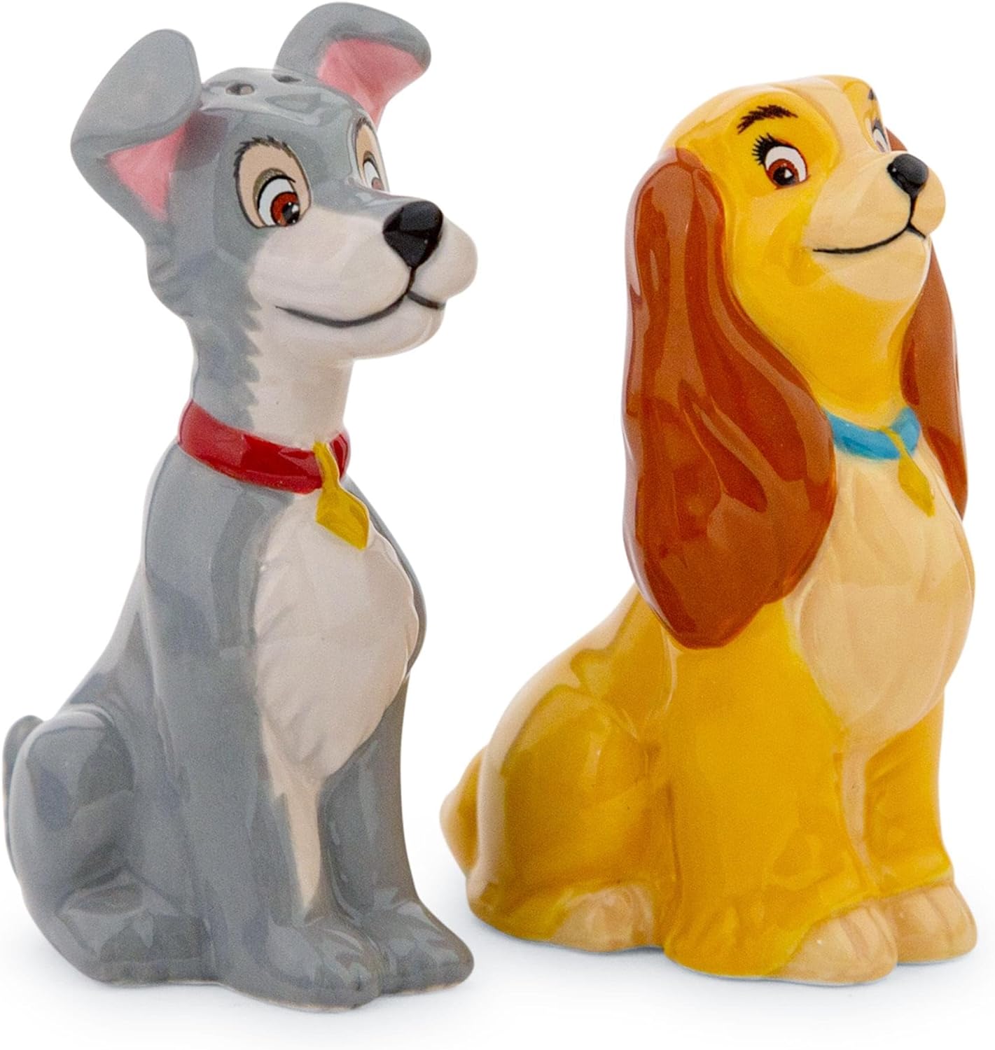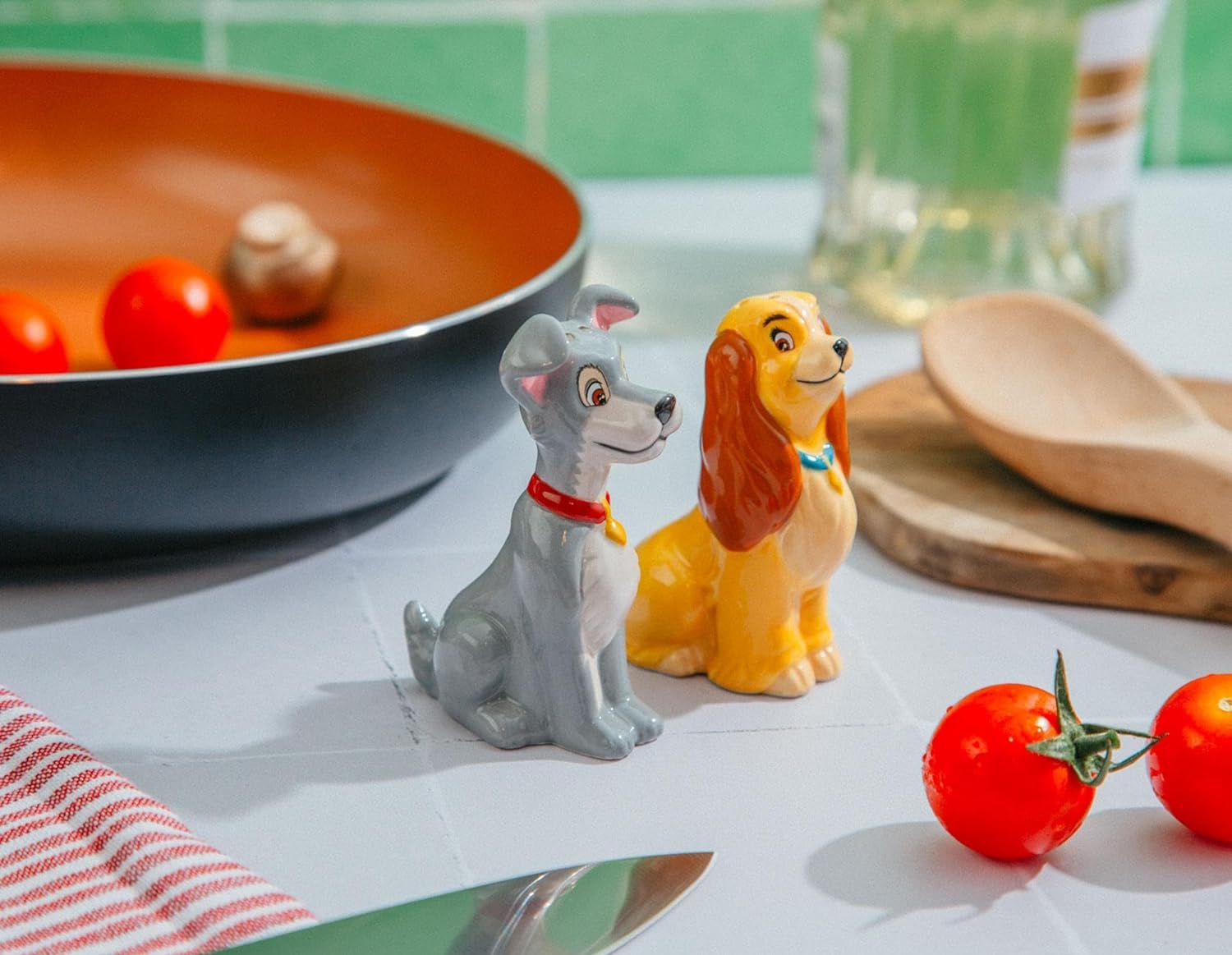 - Encantador personaje canino: añade un poco de amor a tu próxima cena fantástica para dos. Estos dispensadores de especias han sido esculpidos para parecerse a la refinada dama y su novio vagabundo, haciendo que cada comida sea mejor con una pizca de romance.