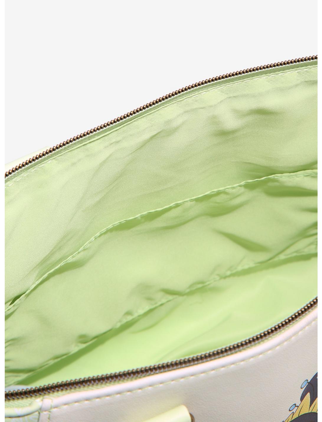- ¡Ya sea que vaya al pantano o visite a Mama Odie, esta cartera es perfecta para llevar todos sus elementos esenciales! De La princesa y el sapo, este bolso presenta un estampado inspirado en la acuarela de la princesa Tiana y Naveen en su forma de rana, con Ray revoloteando en la parte trasera y un ligero estampado de lirios en los costados. Viene con una correa cruzada extraíble y ajustable, un bolsillo interior y un cierre de cremallera en la parte superior.