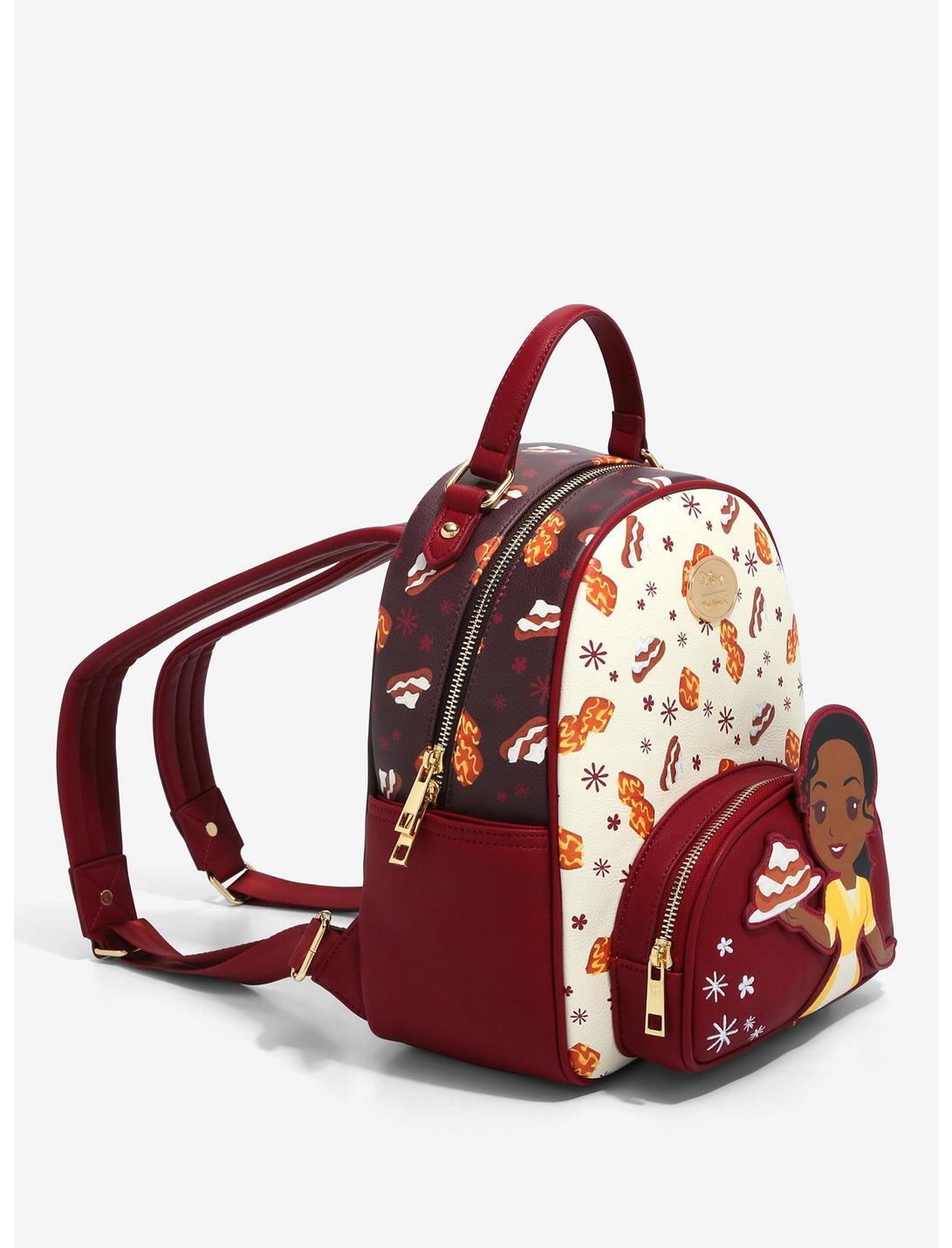 - ¡Vive una aventura gastronómica con Tiana cada vez que lleves esta elegante minimochila de Our Universe contigo! La princesa de Disney de La princesa y el sapo aparece como un aplique troquelado en el bolsillo delantero de este bolso, que lleva un plato de buñuelos para darle un toque dulce a cualquier look. Con un estampado completo de beignets más deliciosos, esta bolsa es perfecta para llevar utensilios, bebidas embotelladas y otras necesidades para un día de golosinas y comidas. También cuenta con una insignia esmaltada de la marca, dos bolsillos laterales, herrajes dorados, correas ajustables para los hombros y un patrón de forro interior de "Tiana".