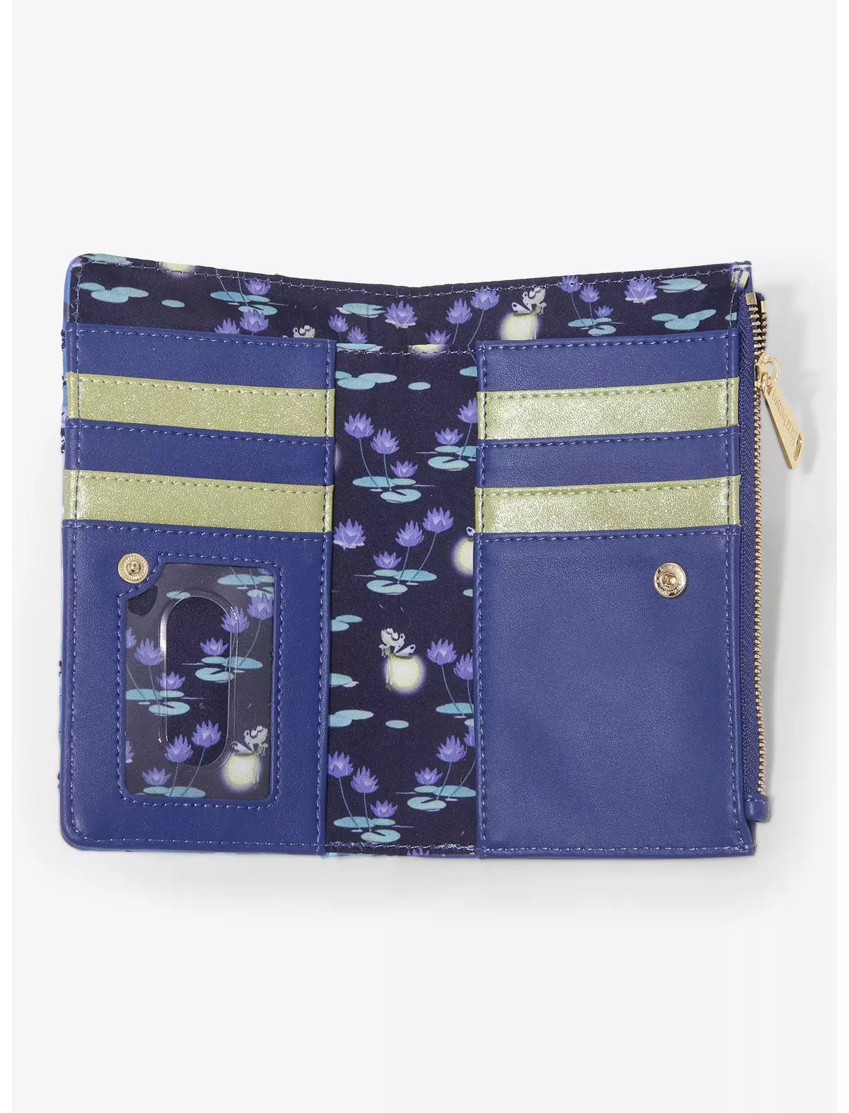 ¡Lleva el pantano a tus accesorios con esta billetera inspirada en La Princesa y el Sapo! Esta cartera, que presenta un aplique de Tiana en la parte delantera con detalles de hojas bordadas, incluye estrellas que brillan en la oscuridad en la parte delantera y trasera. Con siete ranuras para tarjetas, una funda transparente para identificación, compartimentos para billetes y un bolsillo con cremallera, perfecto para guardar tus elementos esenciales a la moda real.