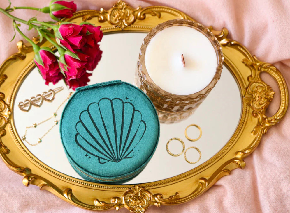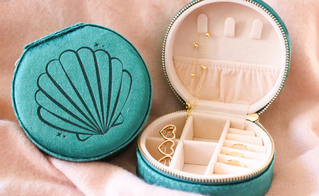 ✦TAMAÑO: 4" x 4" x 2" ✦Joyero redondo de terciopelo grabado ✦Para tus joyas y pequeños recuerdos.