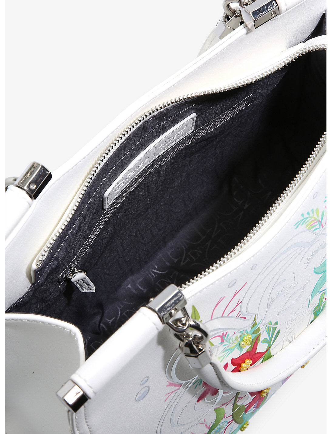 Con un hermoso diseño inspirado en la Sirenita en la parte delantera, este bolso de Danielle Nicole realmente demuestra que es mejor donde está más húmedo. Ariel protagoniza un colorido diseño floral que combina aplicaciones de cuentas y efectos visuales dinámicos para un retrato alegre de la princesa de Disney. También cuenta con herrajes plateados, un bolsillo interior con cremallera y un parche de la marca grabado.
