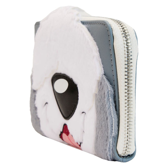 ¡El compañero peludo del príncipe Eric ahora puede ser tuyo en forma de billetera! La cartera con cremallera alrededor de Loungefly Little Mermaid Max Cosplay es difusa en el frente con piel sintética de la cara preciosa de Max. Este perro marinero está listo para guardar todo lo que necesita con cuatro ranuras para tarjetas y una ranura para identificación transparente.