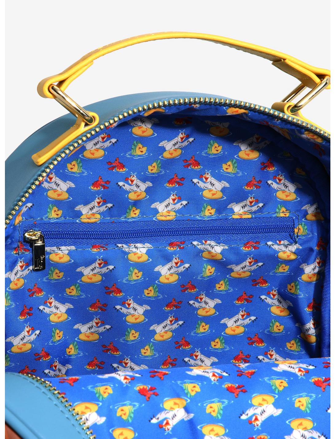 ¡Llevar tus esenciales de playa nunca ha sido tan elegante! Ariel y Eric están listos para mejorar tu juego de estilo de verano como los coloridos gráficos frontales de esta minimochila Loungefly. Con herrajes dorados, asa superior e insignia de la marca, ¡este bolso seguramente alegrará cualquier look! También cuenta con Sebastian, Flounder y Scuttle como forro interior estampado, correas ajustables para los hombros y un bolsillo interior con cremallera. El accesorio perfecto para los fans del clásico de Disney, La Sirenita.