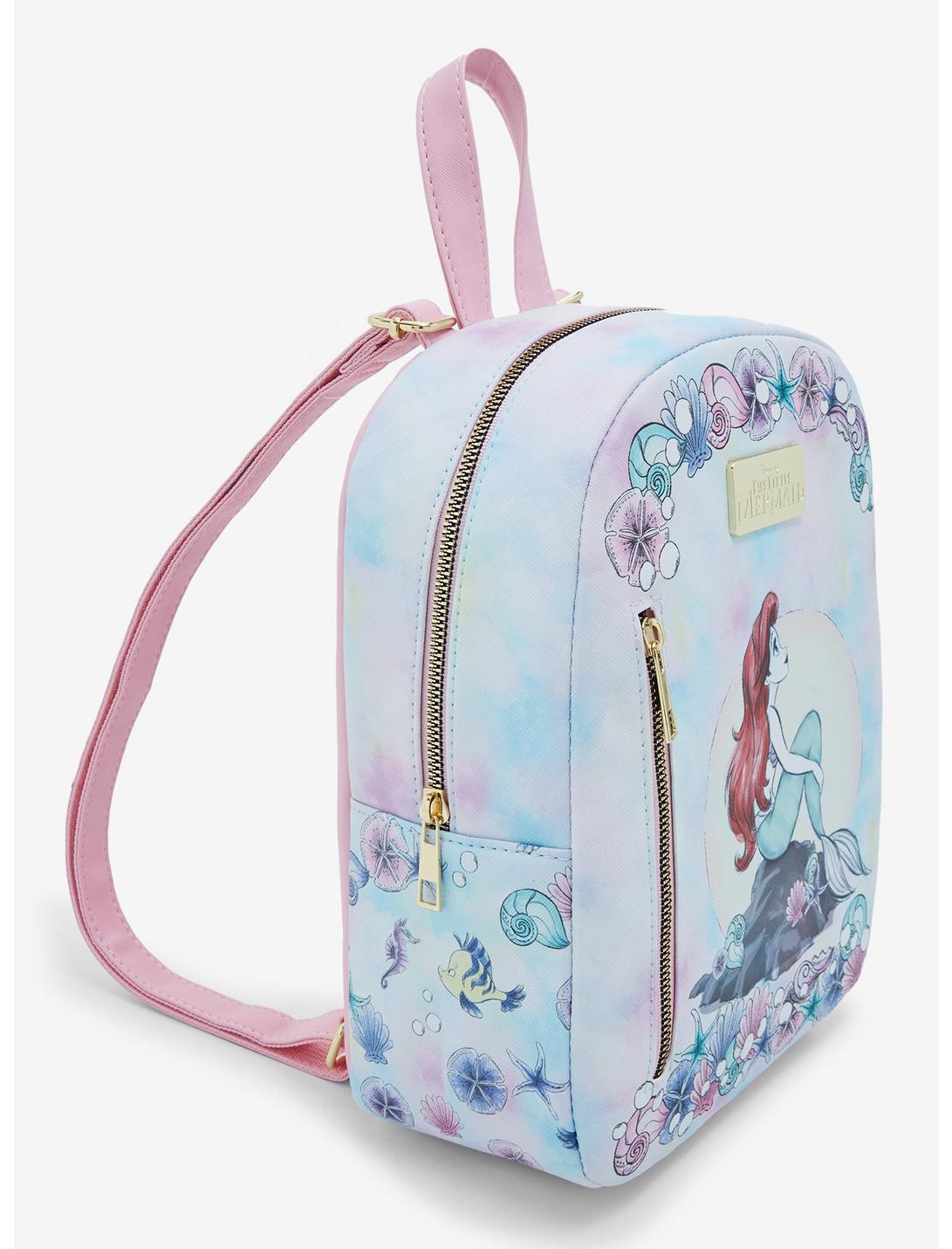 ¿Haciendo un viaje al mundo humano? ¡Entonces necesitarás esta minimochila para guardar todos tus dispositivos y artilugios! De La Sirenita, esta mini mochila presenta una escena inspirada en acuarela que representa a Ariel sentada sobre una roca a la luz de la luna, además de un borde de conchas y estrellas de mar. Viene con correas ajustables, bolsillo frontal con cremallera, bolsillo interior y un asa de transporte superior.