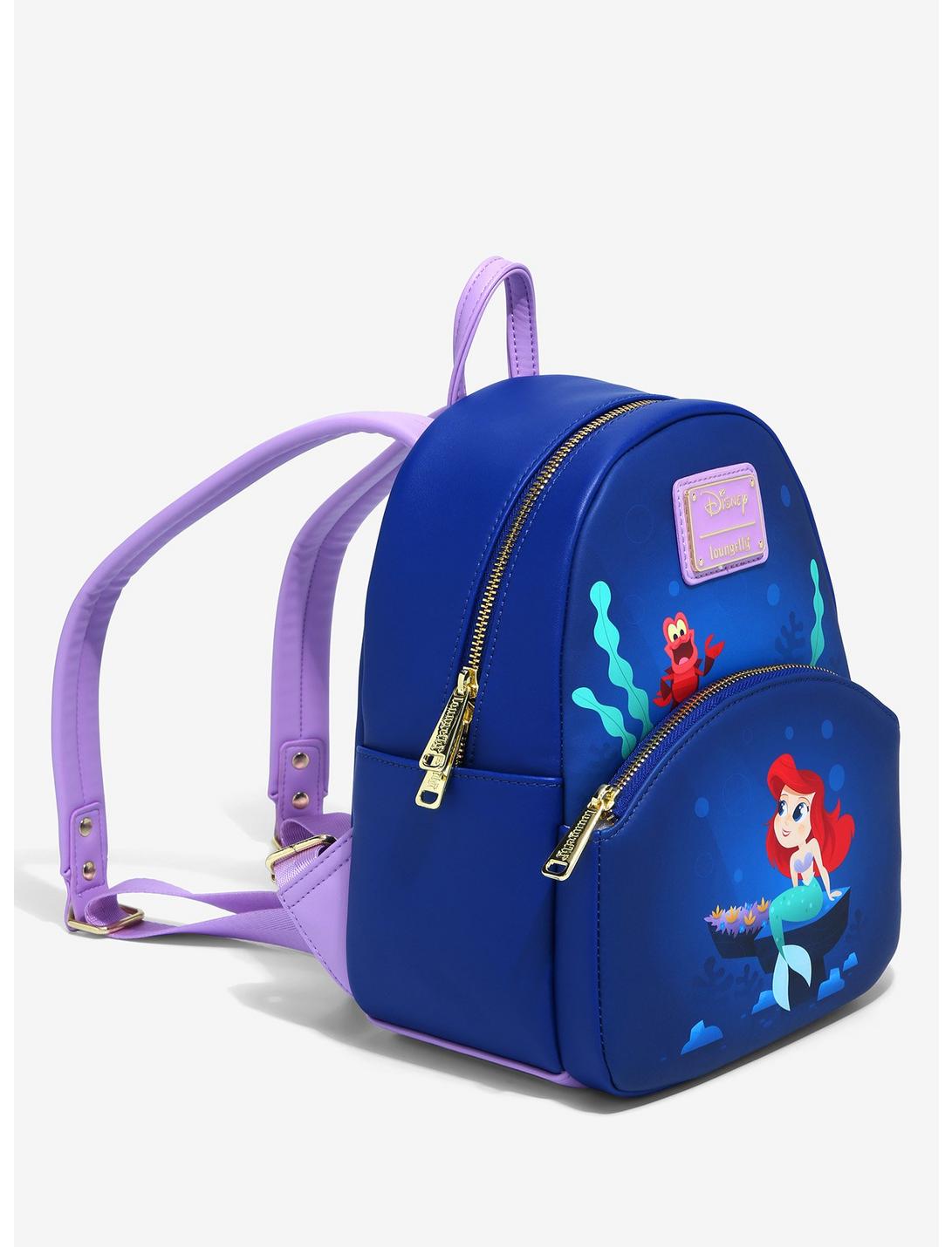 Mira esto, ¿no es genial? ¡Parece que tu colección no estará completa sin esta adorable minimochila de La Sirenita de Loungefly! Ariel está sentada bajo el mar en la parte delantera de este estilo, mientras que Sebastian luce una gran sonrisa debajo de la insignia esmaltada de la marca mientras mira por el bolsillo delantero con cremallera. Con un elegante interior lavanda a juego con el asa superior y las correas ajustables para los hombros, ¡este look es perfecto para darle un toque súper lindo de Disney a cualquier atuendo!